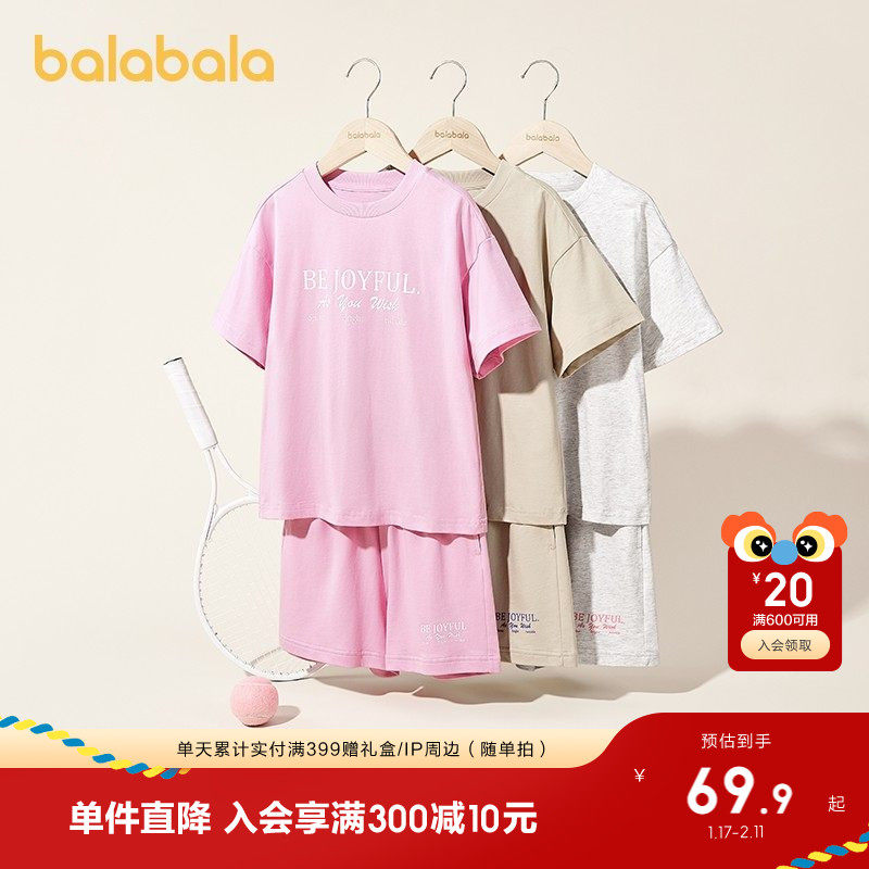 巴拉巴拉童装女童套装儿童春夏装2025两件套纯棉印花休闲时尚轻薄