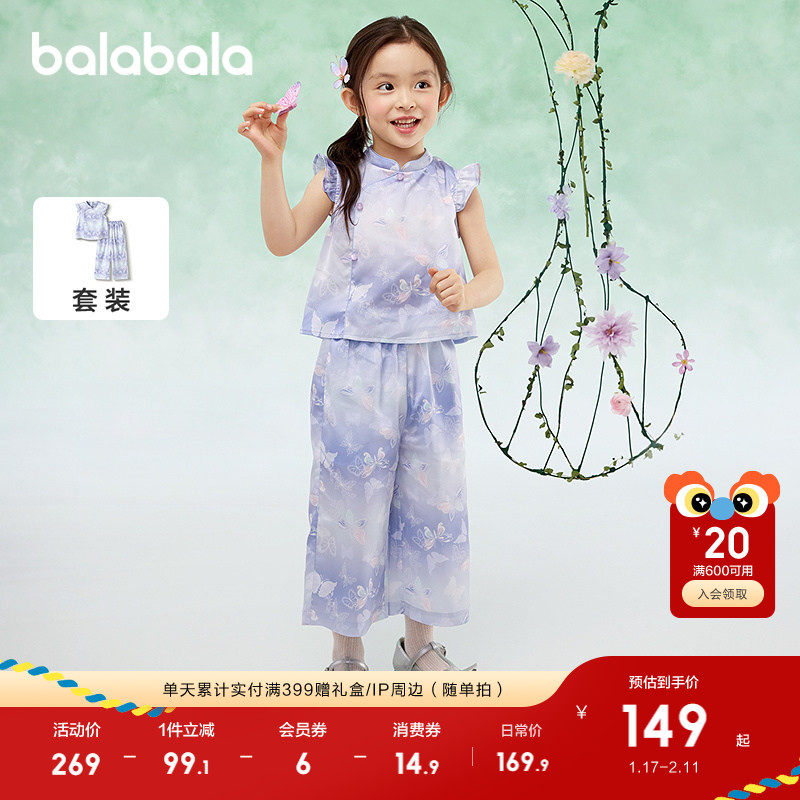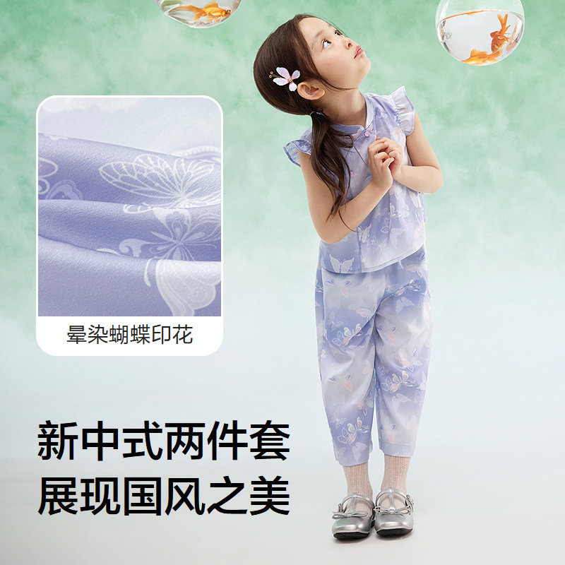 巴拉巴拉童装儿童短袖套装女童2025夏装新款两件套国风长裤新中式