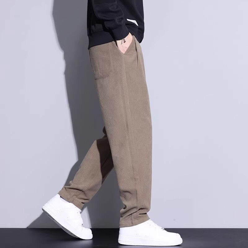 加绒加厚灯芯绒男裤子宽松大码中青年直筒休闲长裤耐穿耐磨弹力裤