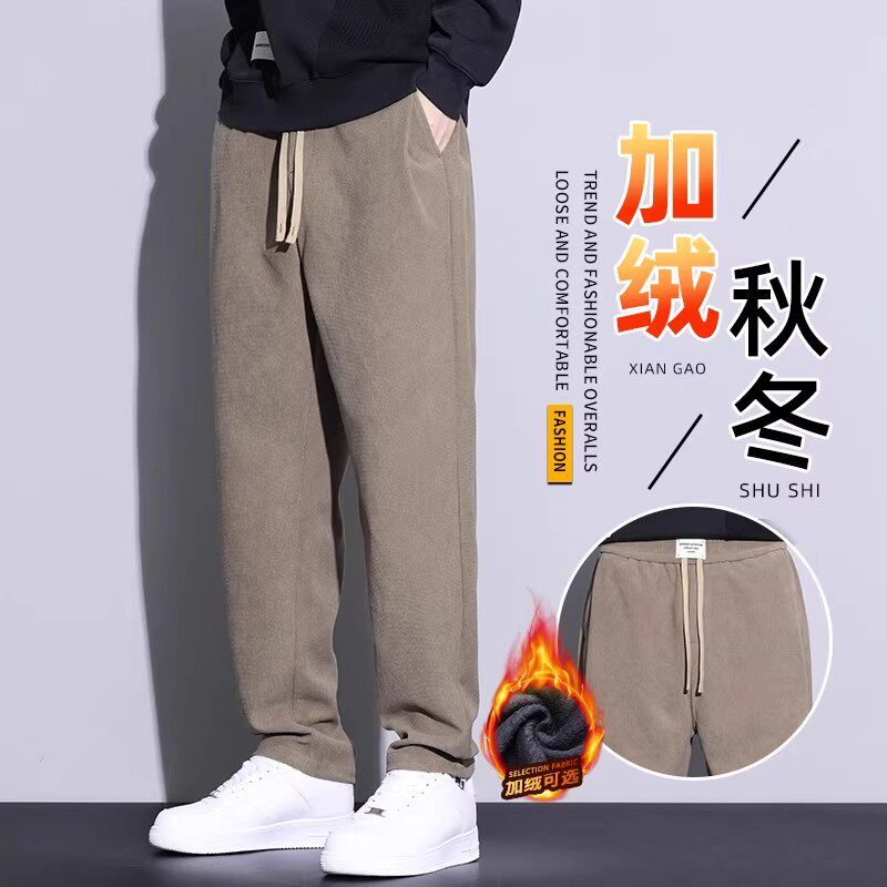 秋季休闲裤男士加绒直筒卫裤秋冬潮牌运动阔腿长裤子男生2025新款
