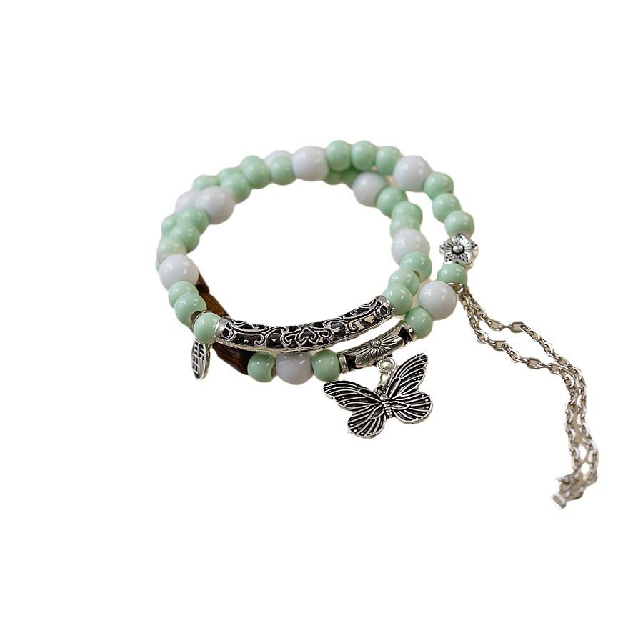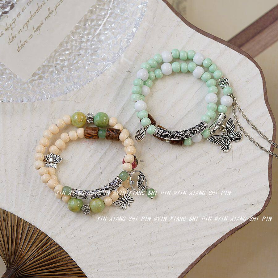 创意双圈陶瓷新中式手链女民族风文艺蝴蝶仙气时尚手串饰品潮