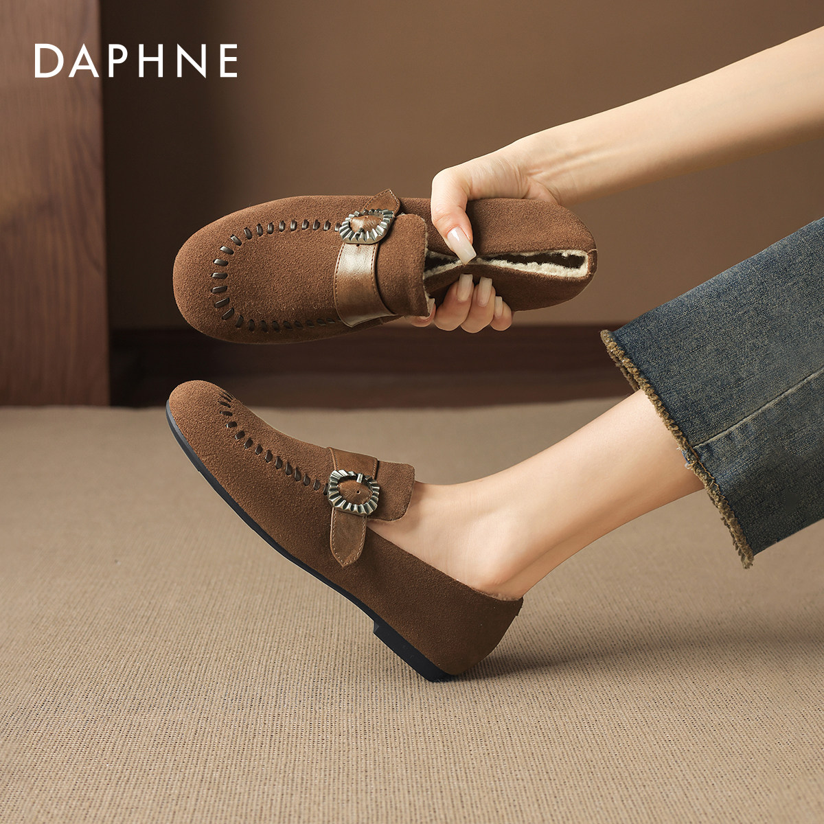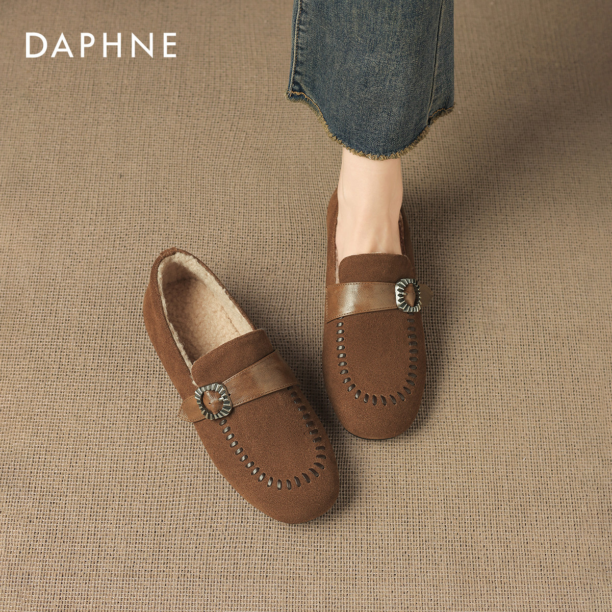 达芙妮加绒乐福鞋女2026新款冬季平底豆豆鞋软底通勤单鞋保暖棉鞋