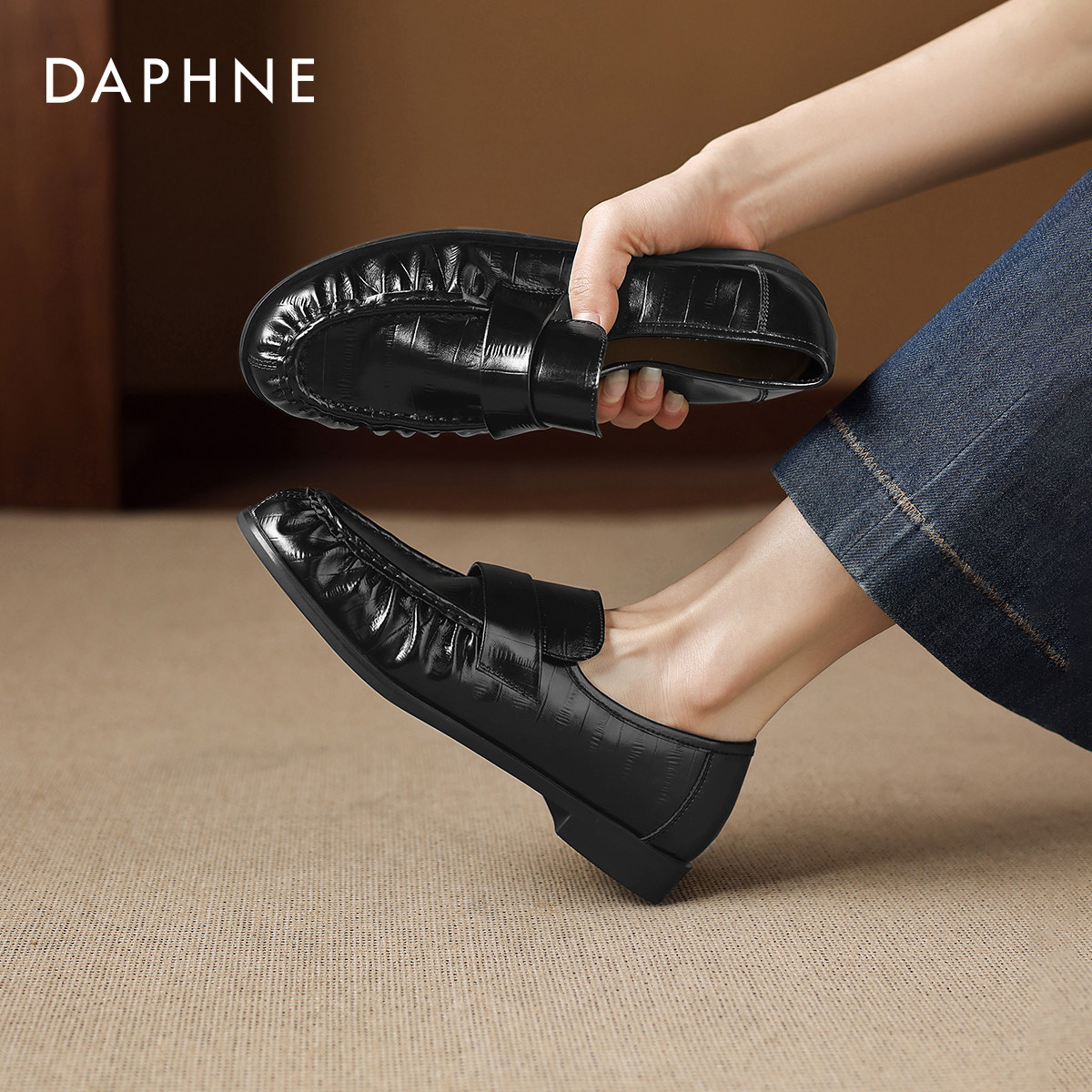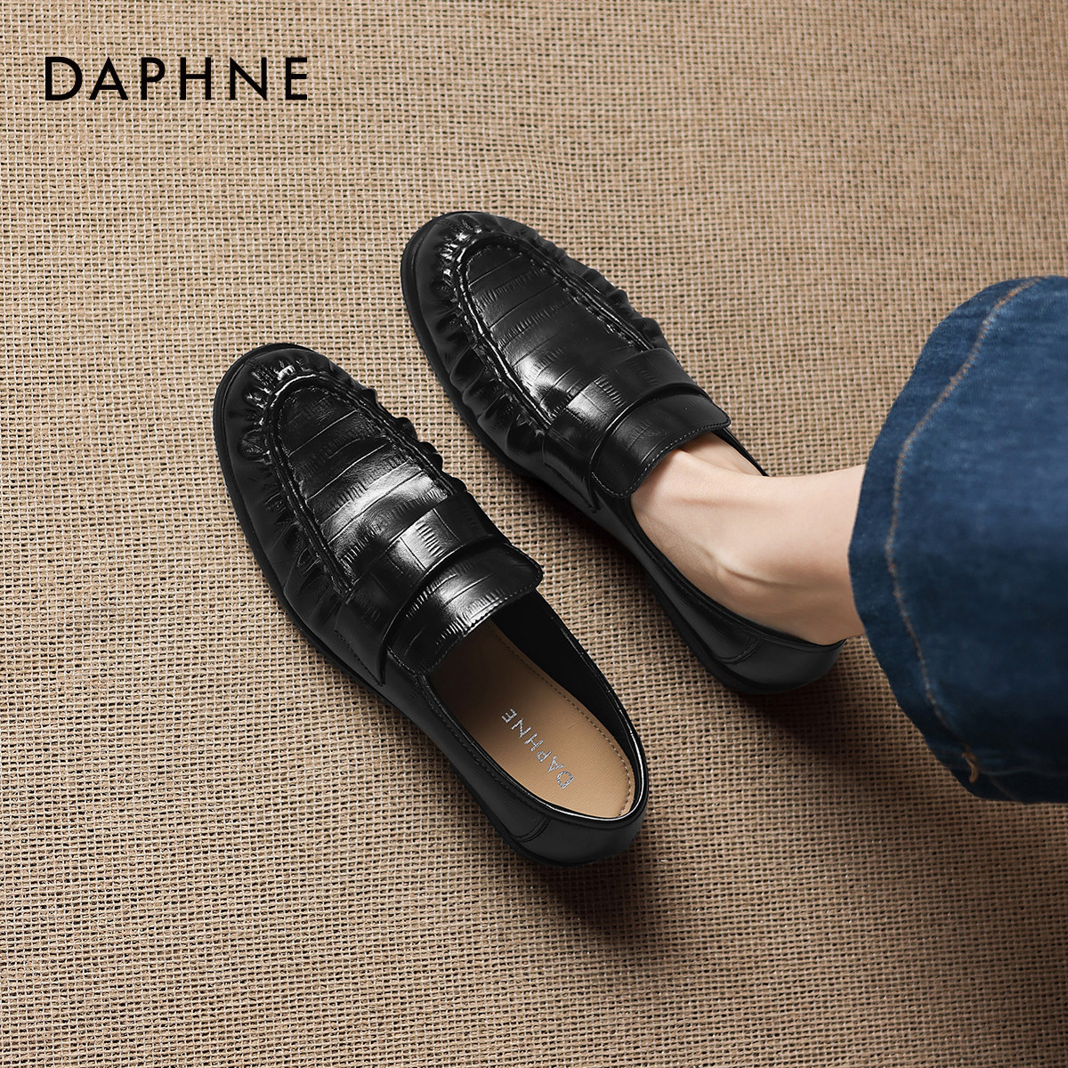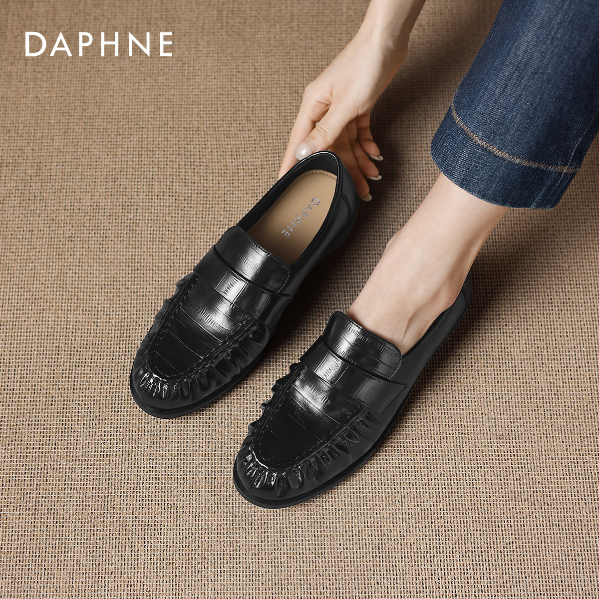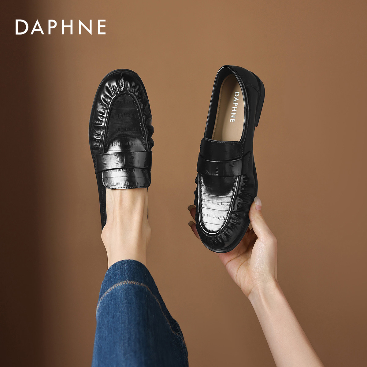 达芙妮乐福鞋女2026新款春季英伦黑色一脚蹬平底百搭小皮鞋豆豆鞋