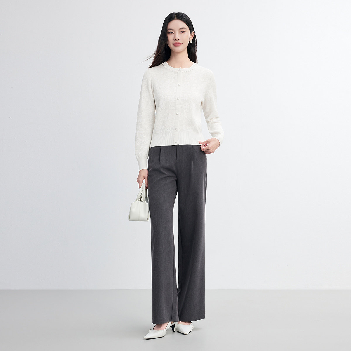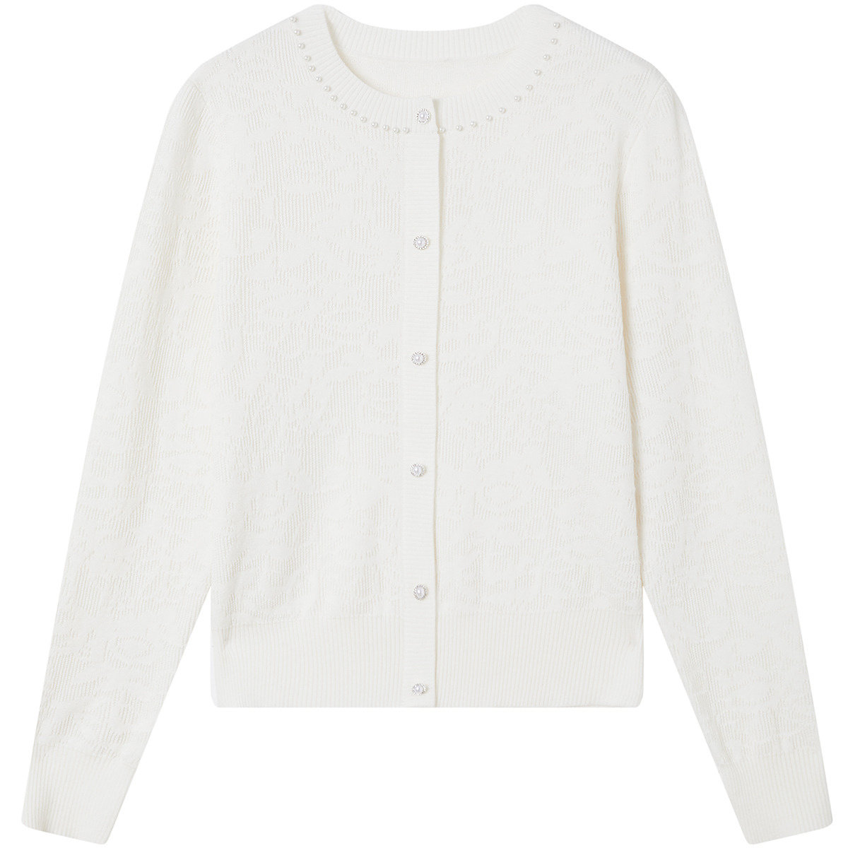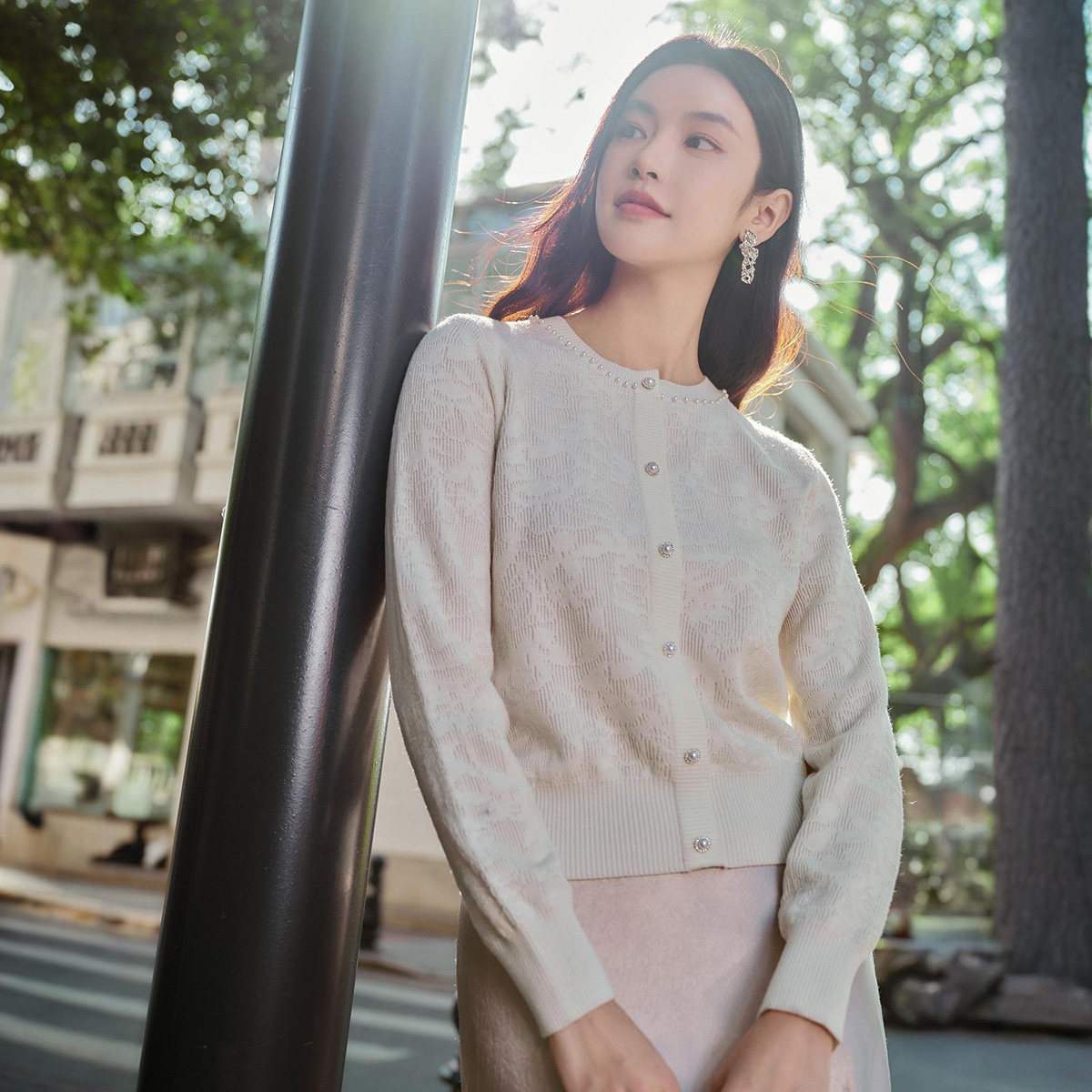 FINITY菲妮迪针织衫2026春新款白色圆领修身设计短款长袖开衫上衣