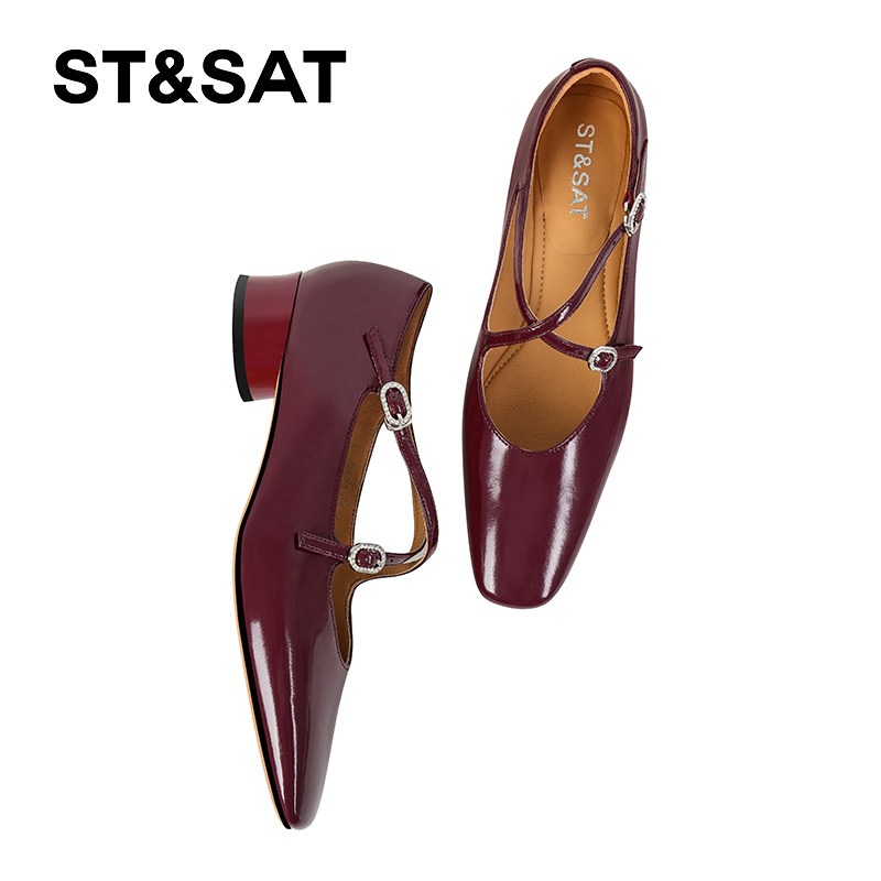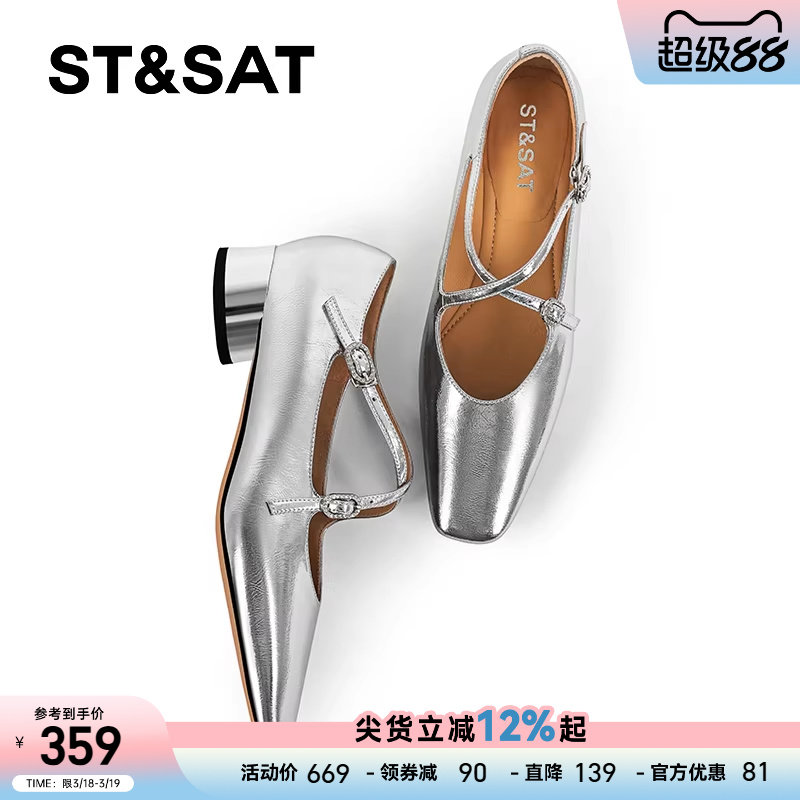 星期六银色玛丽珍鞋女2025方头交叉带法式复古中跟单鞋芭蕾舞鞋子