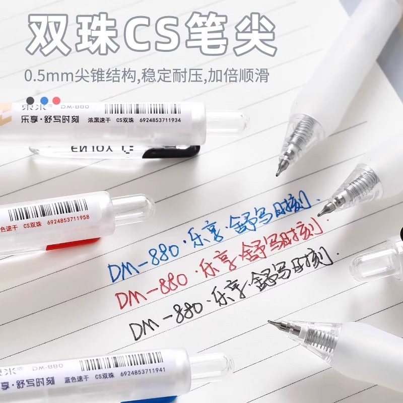 东米880乐享按动中性笔0.5速干顺滑刷题笔学生考试专用黑色水笔初中双珠CS头高颜值简约蓝笔老师批改订正红笔