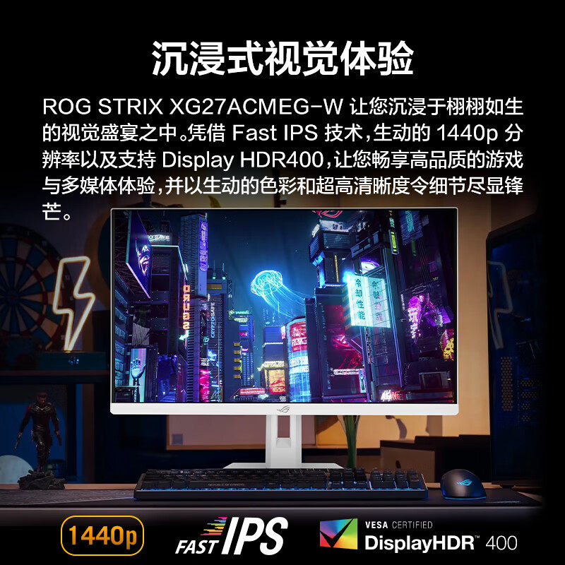 华硕ROG显示器绝杀27英寸吹雪白2K240Hz高刷260电竞台式电脑屏幕