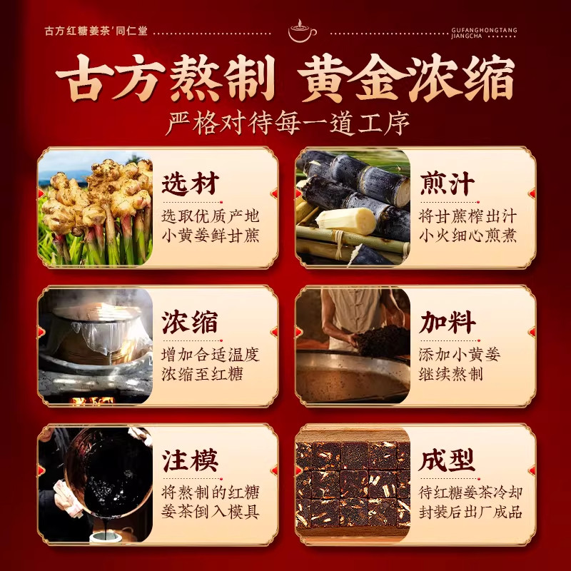 姜糖茶红糖姜茶大姨妈宫寒调理痛经正宗纯手工古方红糖独立小包装