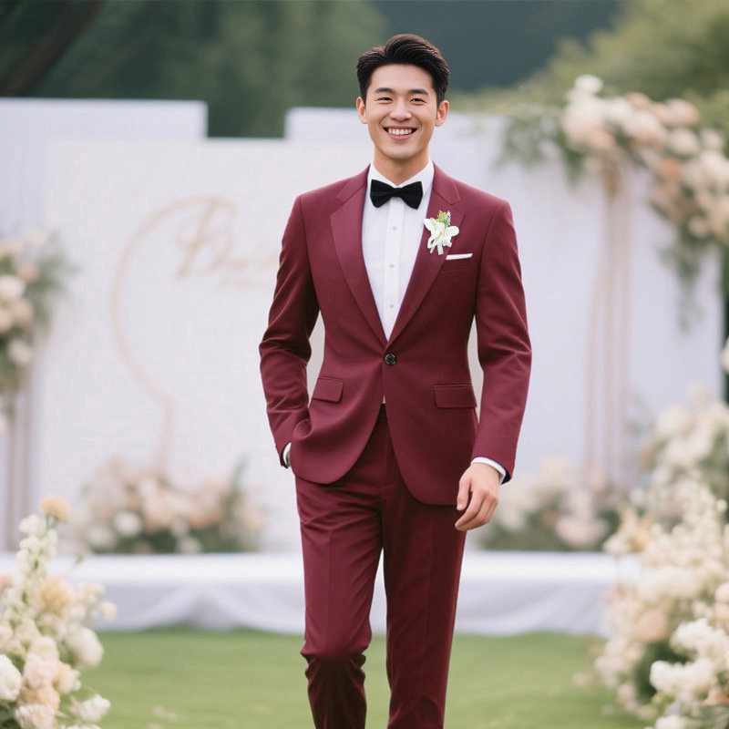 罗蒙男士西服套装2026春夏红色宴会西装伴郎服新郎结婚订婚礼服NX