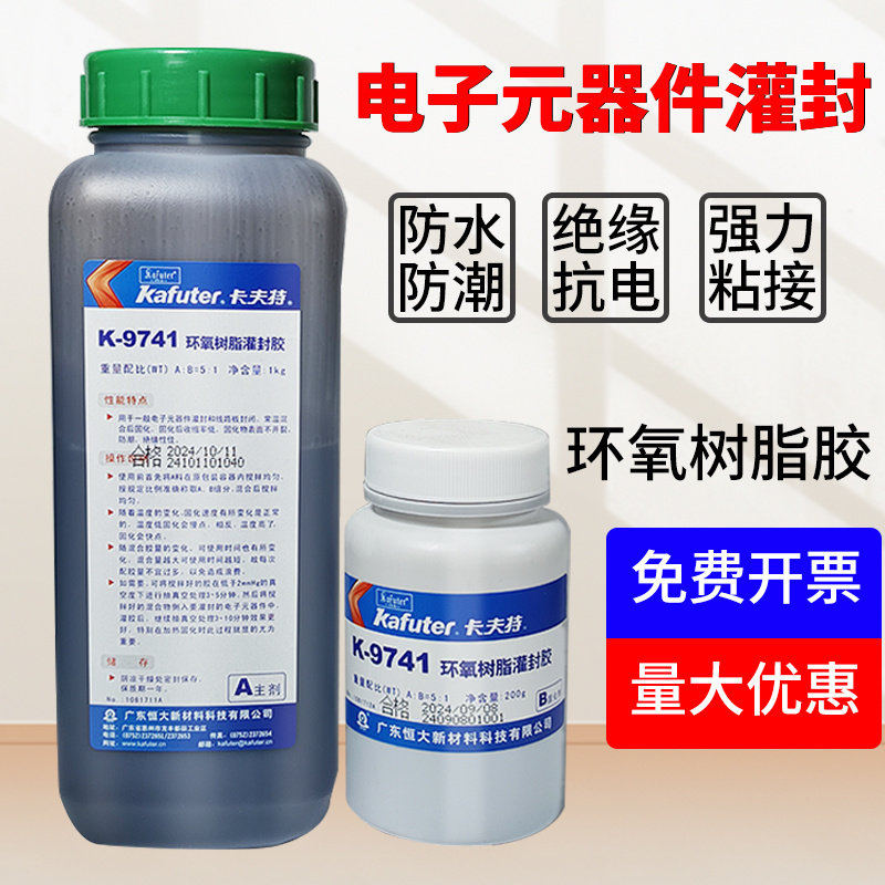 卡夫特密封胶K-9741 9761电子灌封环氧树脂胶密封防水快干耐高温电绝缘元器件线路板封闭高强度强力ab胶黑色