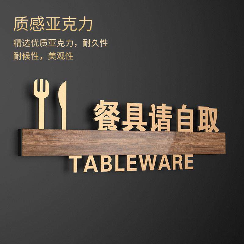 酒店饭厅标识牌定制自助调料区餐具请自取温馨提示牌饭店厨房重地