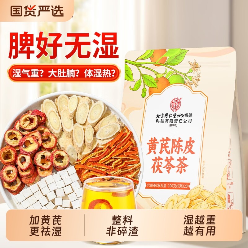 北京同仁堂黄芪陈皮茯苓茶适合女生喝的祛茶包湿气养生茶内廷上用