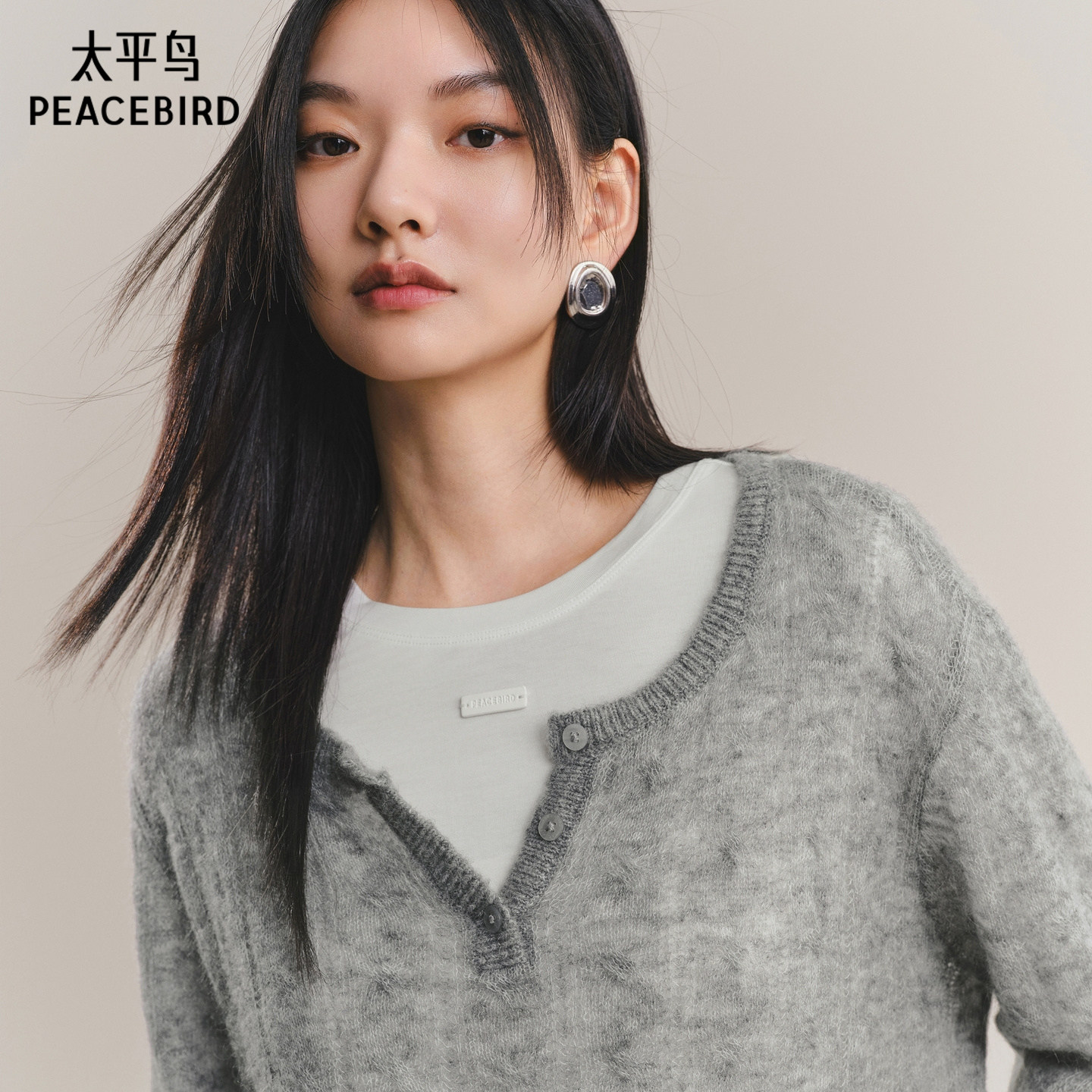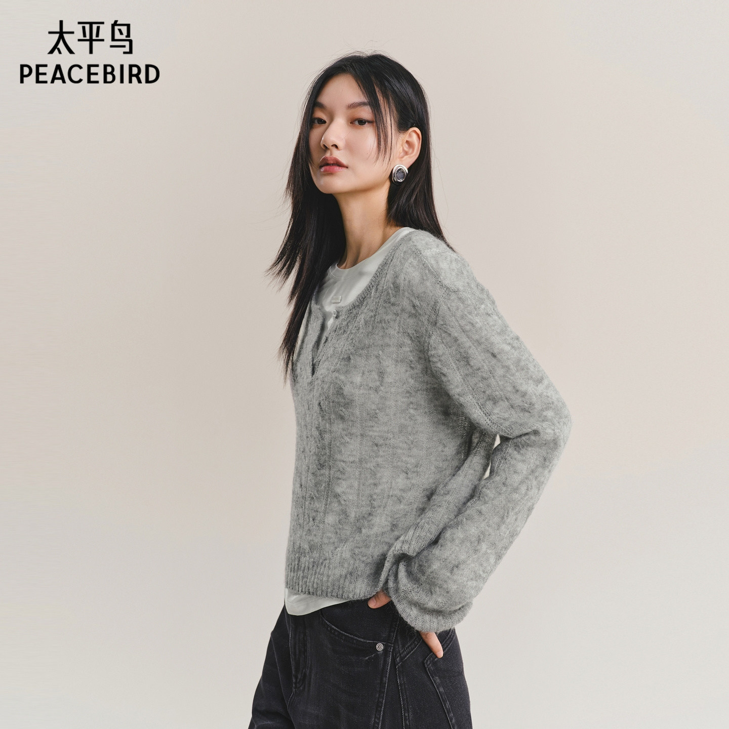 【商场同款】太平鸟马海毛混纺撞色两件套多穿针织衫女A3EEF4613