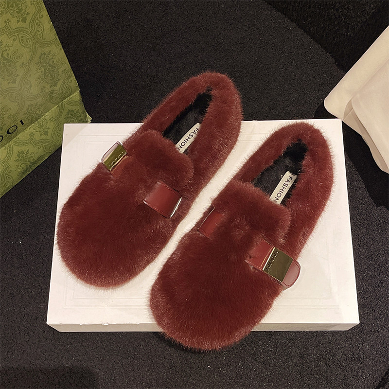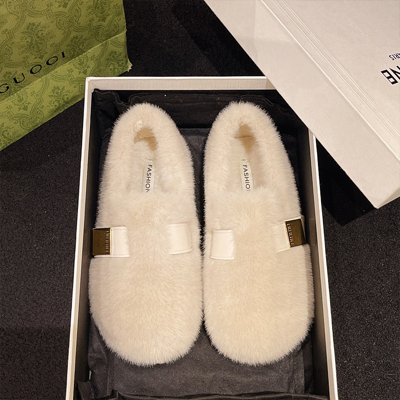 白色勃肯玛丽珍毛毛鞋女外穿加绒保暖水貂毛秋冬2025新款豆豆棉鞋