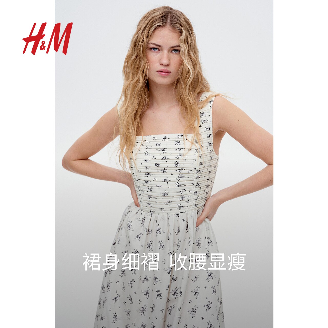 HM女装连衣裙春季小碎花连衣裙吊带露背喇叭碎花连衣裙1270322