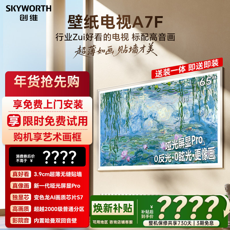 创维壁纸A7F 65英寸Mini LED超薄壁画艺术电视机 焕新补贴 A7E