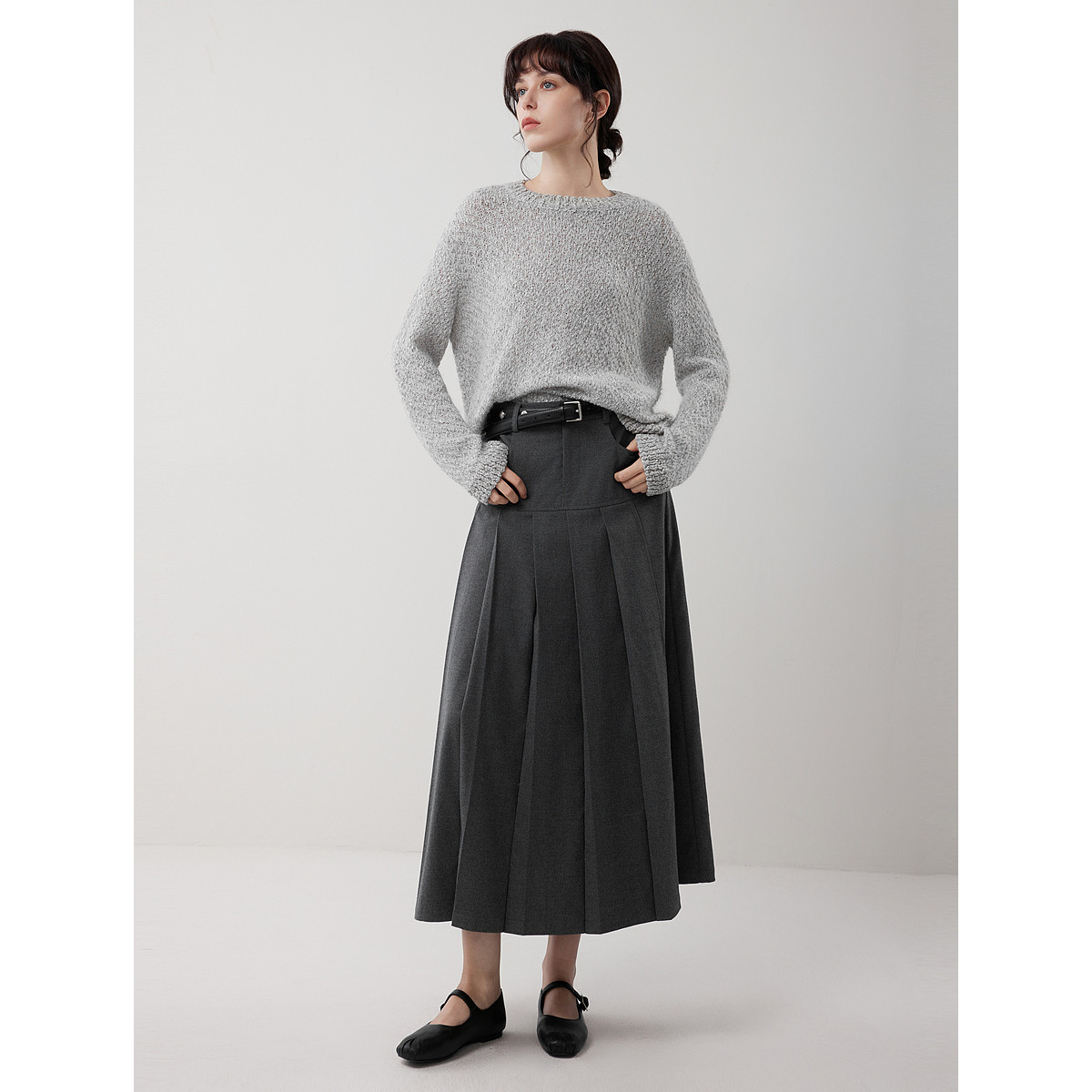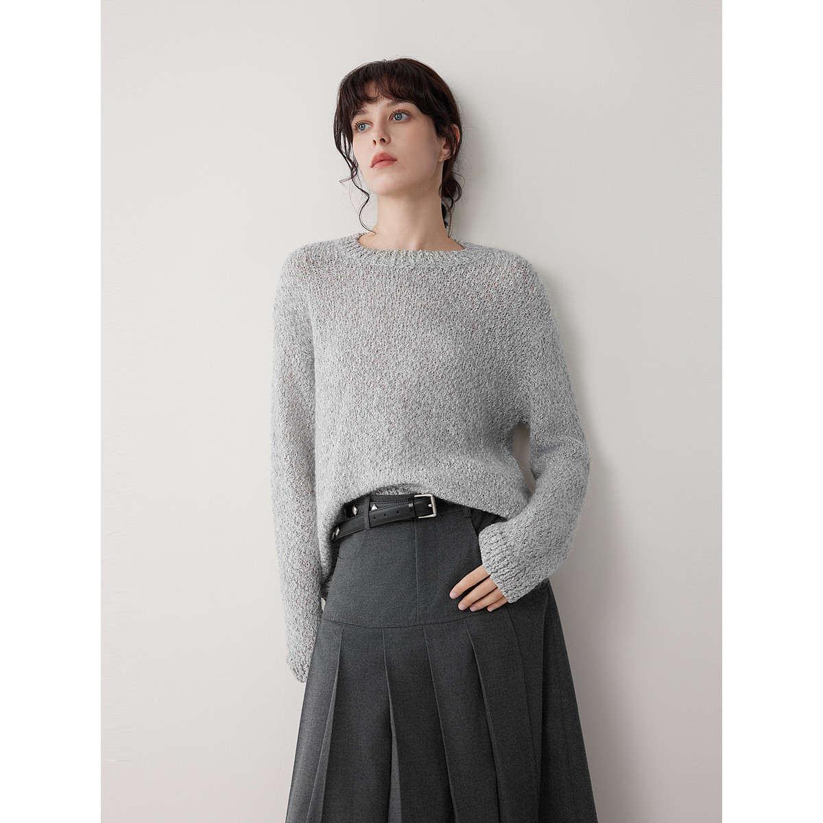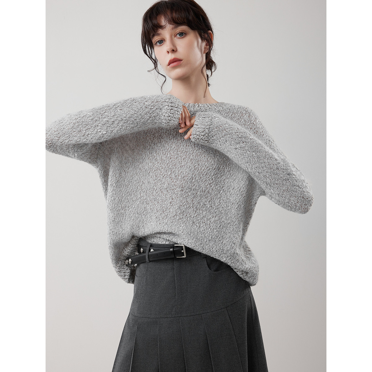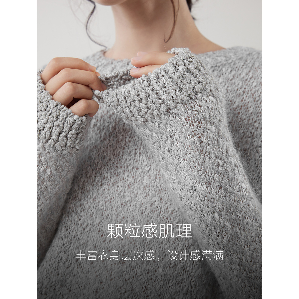 ELLE绵羊毛马海毛肌理感慵懒针织衫女2025冬季新款套头休闲毛衣