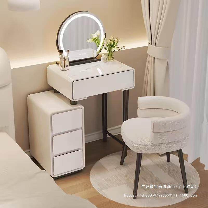 卧室新现代简约梳妆台小户型奶油风主卧玻璃斗柜一体智能镜化妆桌