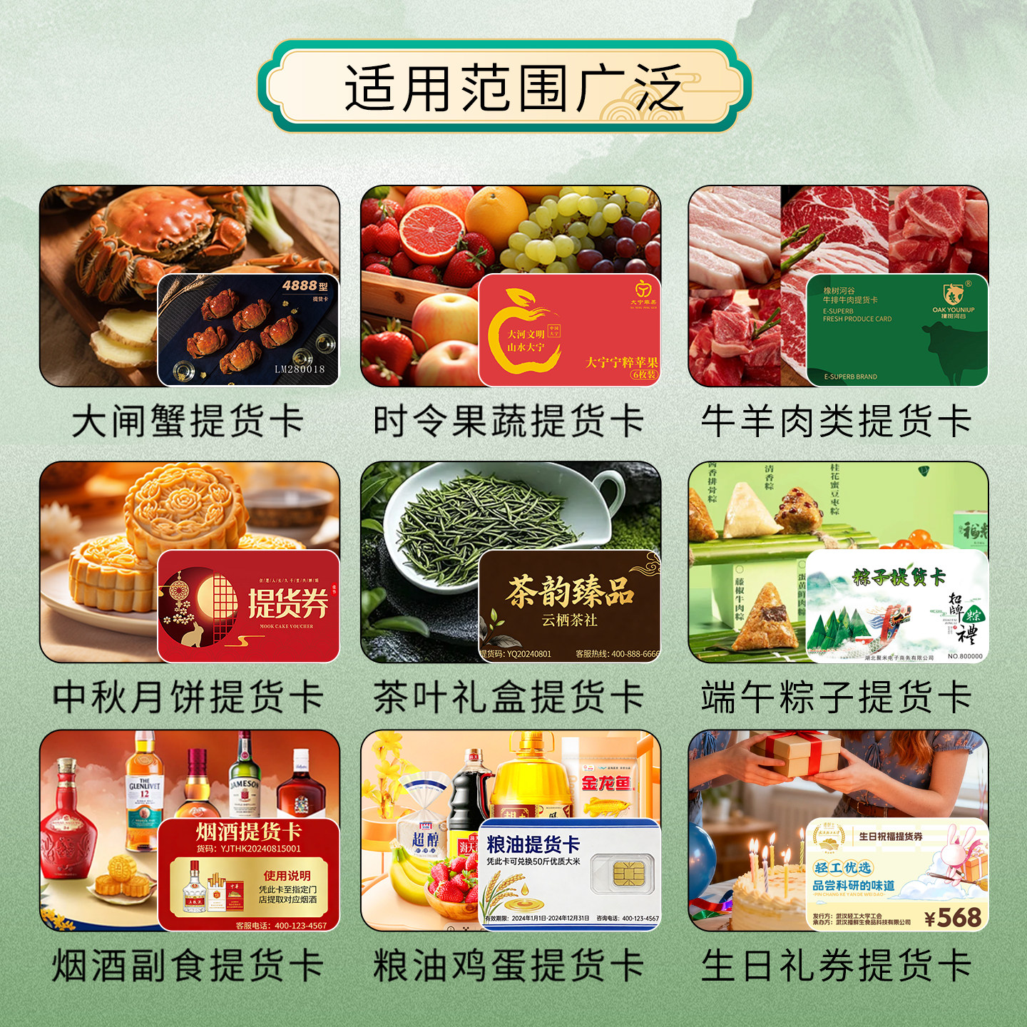 礼品卡提货系统卡券兑换软件大闸蟹海鲜水果茶叶燕窝牛肉羊肉大米月饼蟹卡提货卡定制PVC刮刮卡礼盒卡套制作
