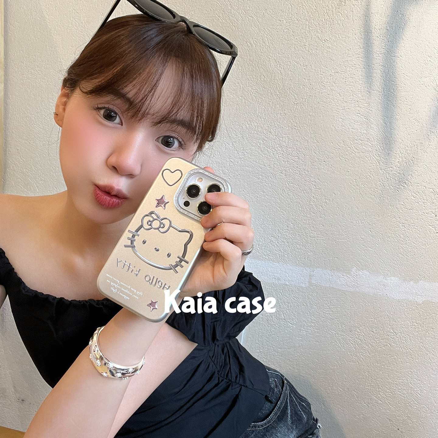 kaia 甜酷ins辣妹卡通哈喽kt凯蒂猫适用苹果16promax手机壳iphone13新款15女14pro带链条16pro全包防摔手机套