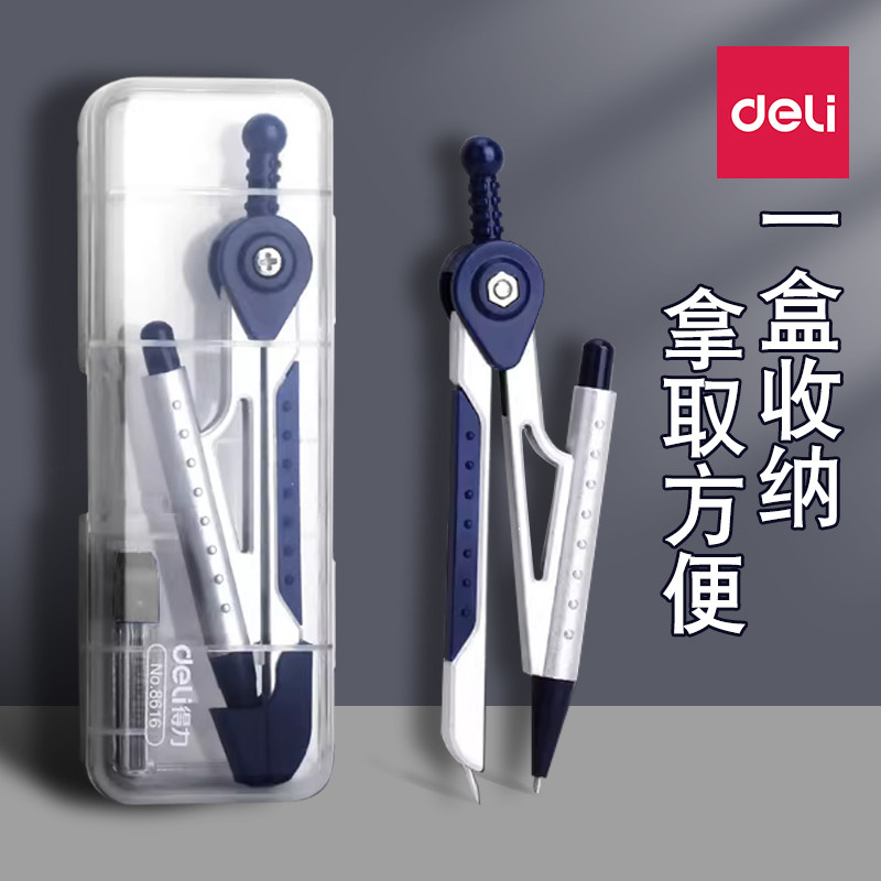 得力圆规学生用作业考试做图专业制图机械工程绘图设计金属圆规