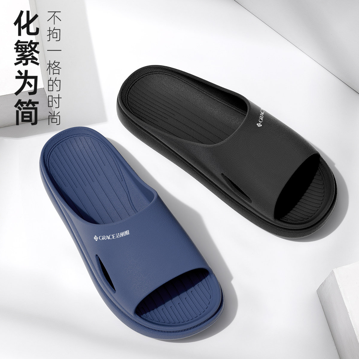 潮流拖鞋男女平底室内家居防滑简约家用情侣浴室塑料软底沙滩凉鞋