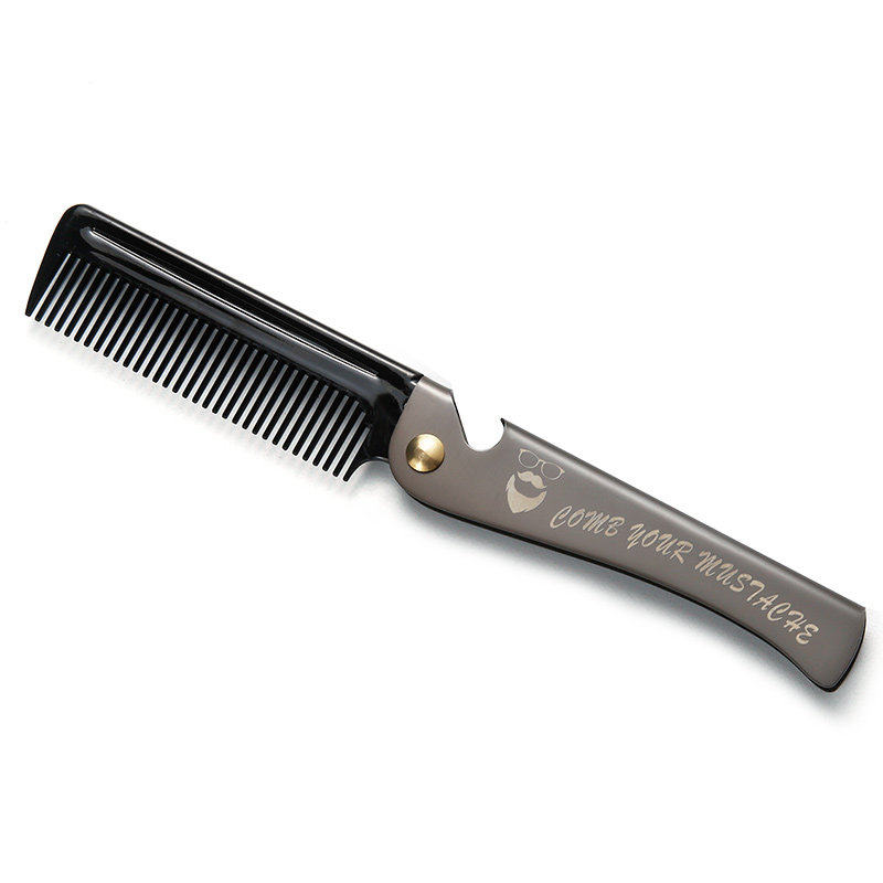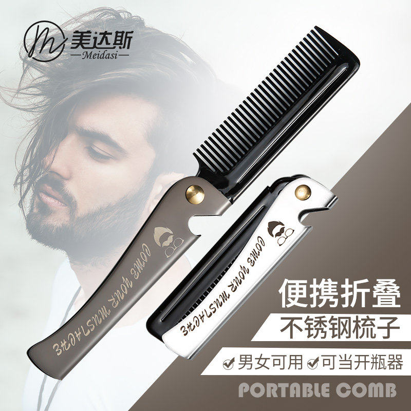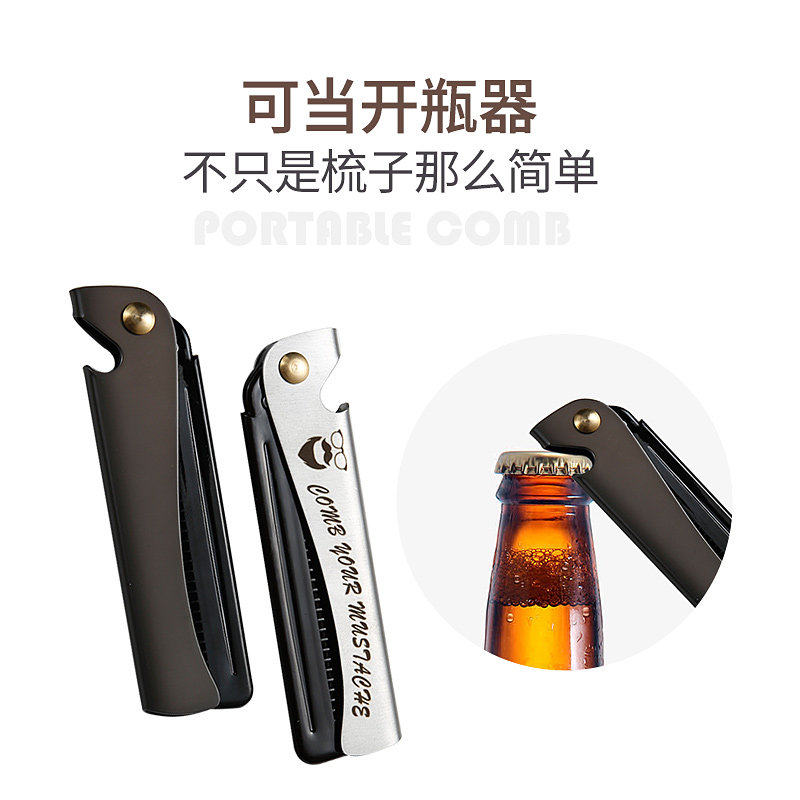美达斯不锈钢便携折叠梳 油头造型弹簧梳限量款 附开瓶器功能棕色
