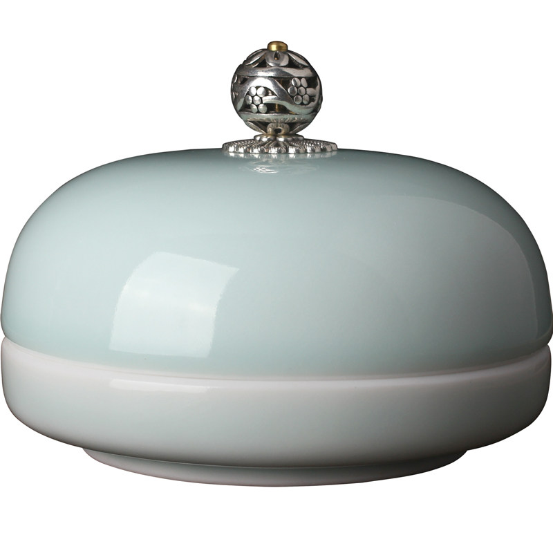龙泉青瓷陶瓷朱砂瓷缸盖提环书法印泥盒胭脂盒篆刻书画
