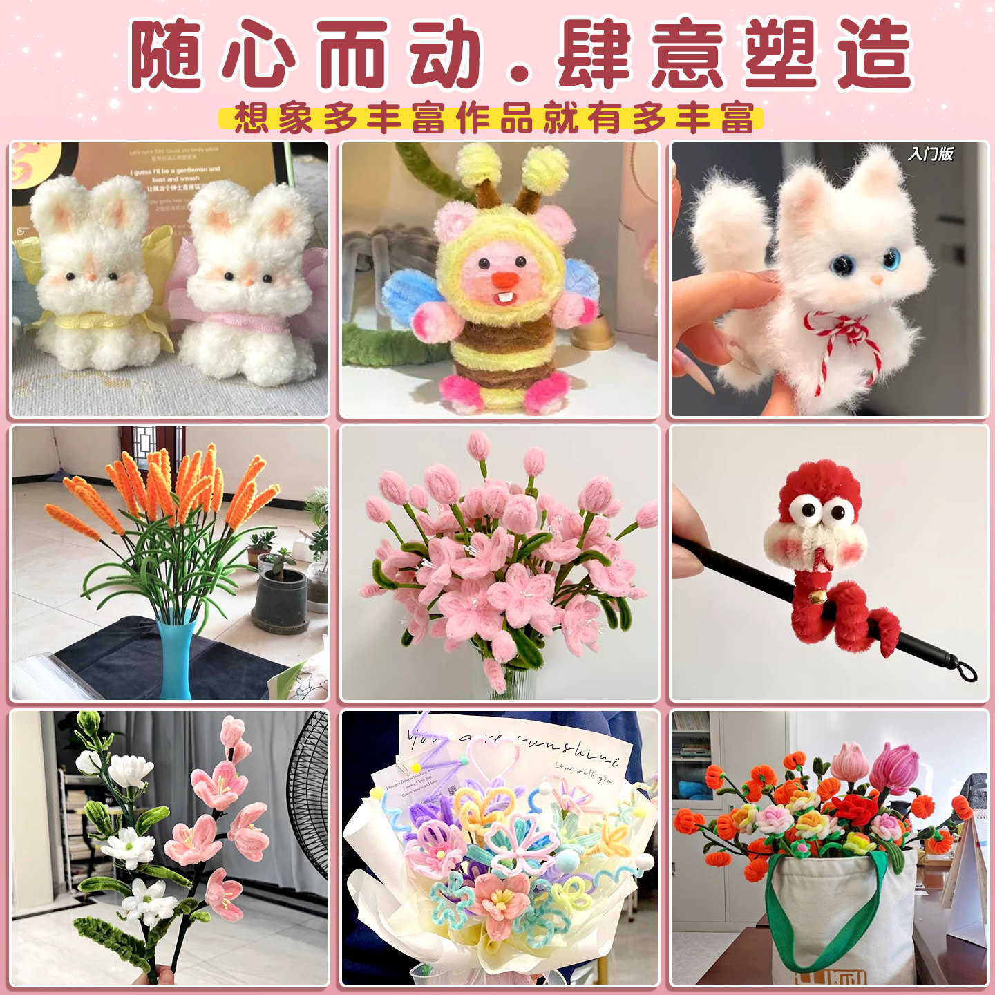 扭扭棒花束手工diy编织材料包妞妞棒毛绒条