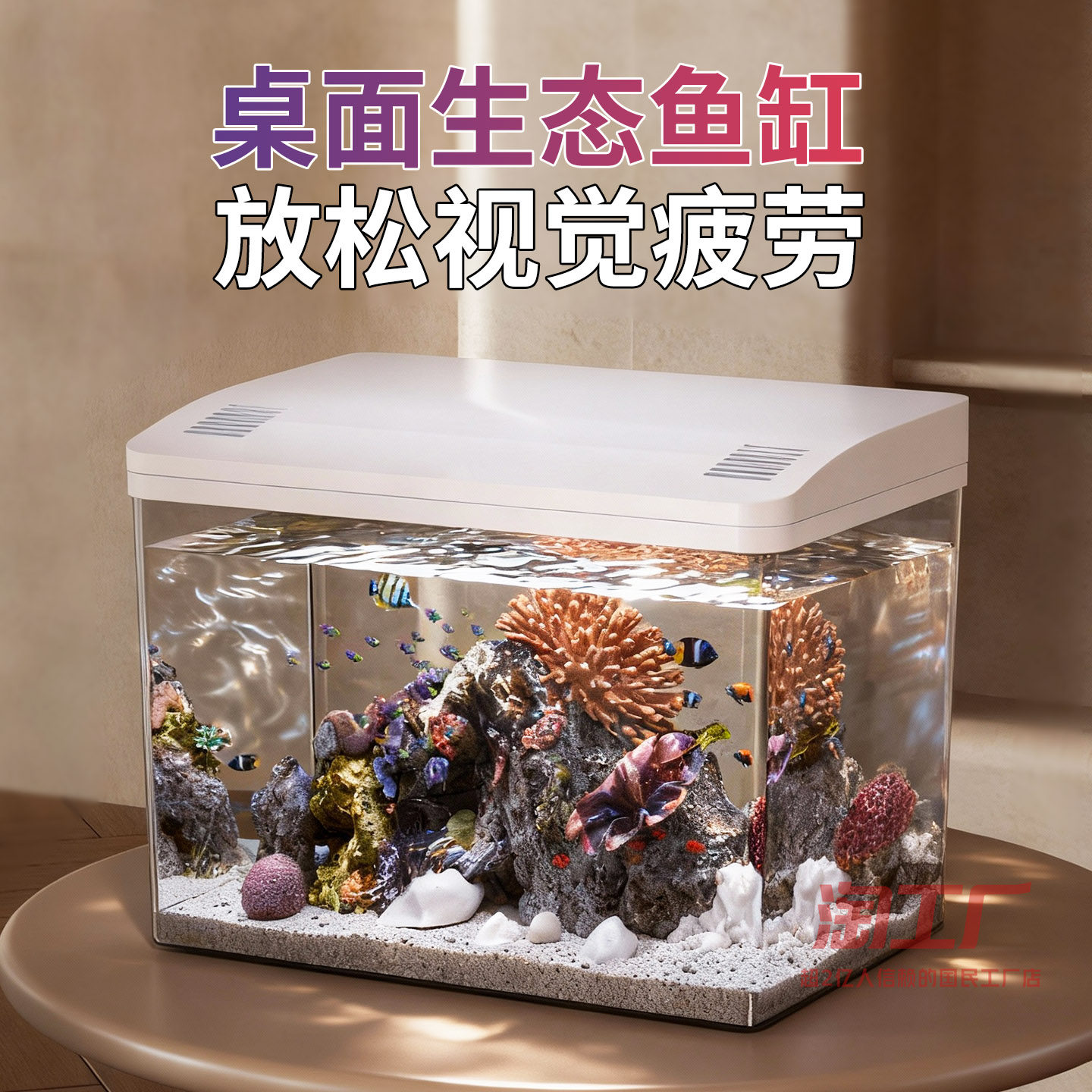 鱼缸新款免换水小型客厅家用过滤制氧一体金鱼斗鱼生态造景专用缸