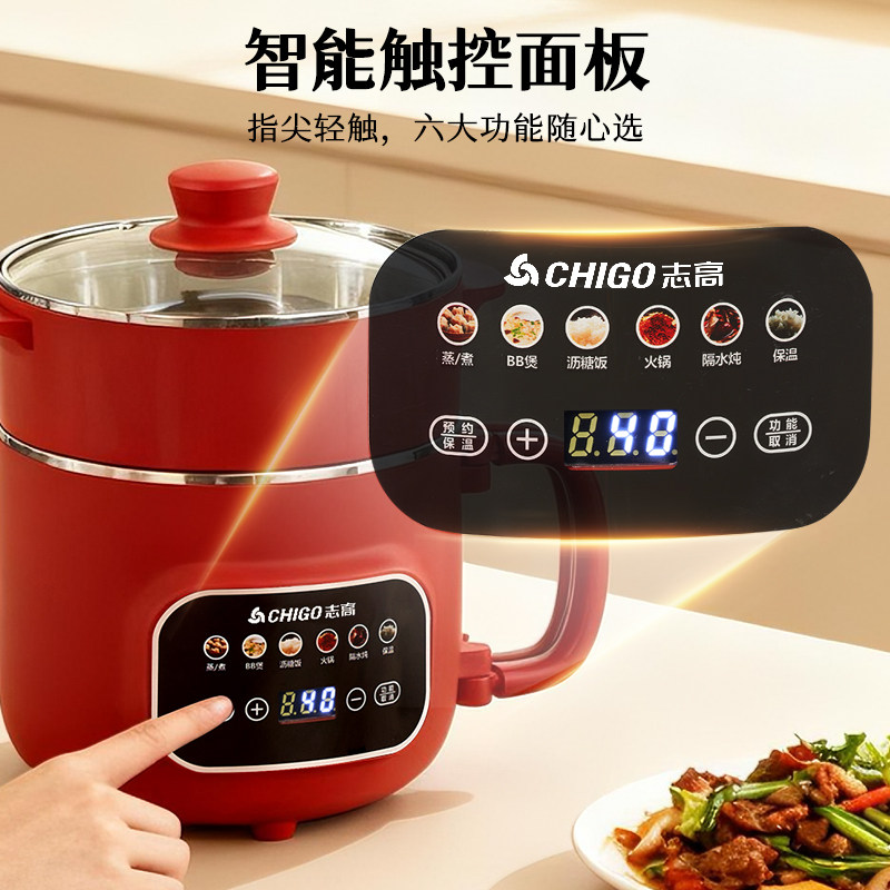 志高电煮锅多功能学生宿舍煮泡面电火锅家用304不锈钢0涂层电饭煲