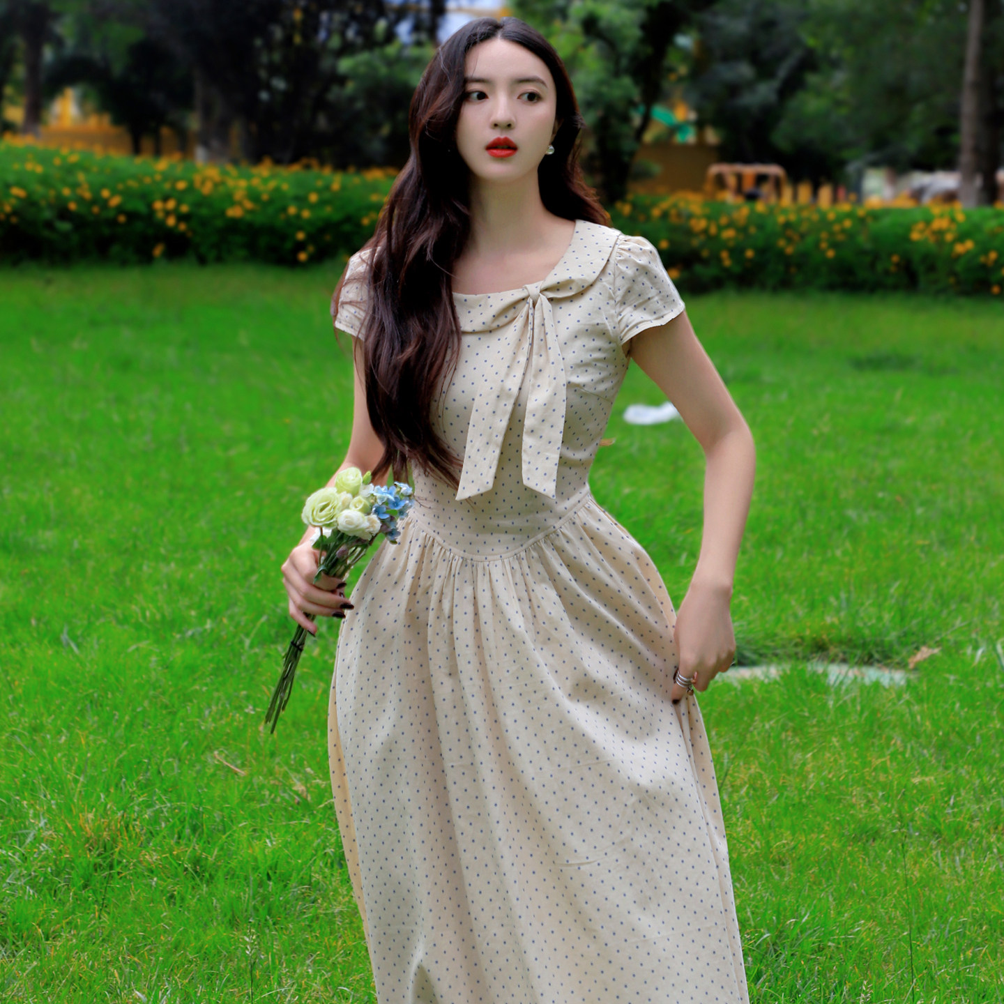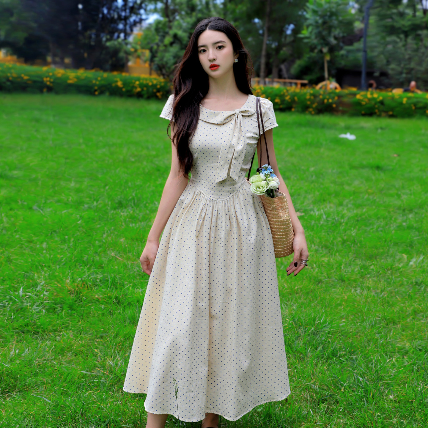 2025年新款春秋冬大摆连衣裙收腰显瘦旅游度假长裙雪纺裙沙滩裙子