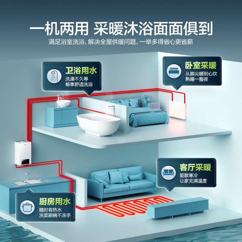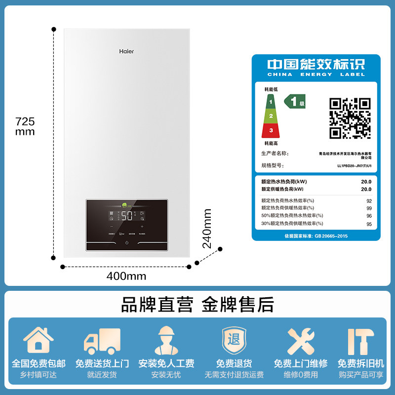 海尔燃气采暖炉壁挂炉天然气家用一级能效冷凝浴地暖两用锅炉统帅