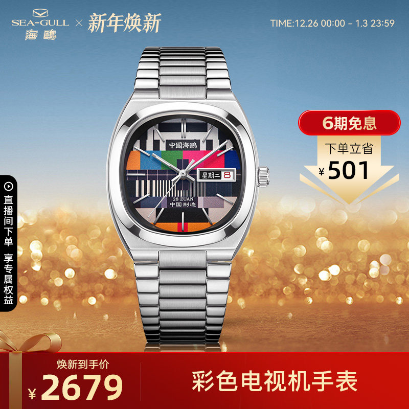 海鸥表手表男款复古电视机女士星期二自动机械表腕表1051