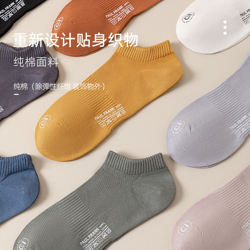 大嘴猴袜子男短袜薄款抗菌100%纯棉防臭透气浅口男士船袜短筒男款