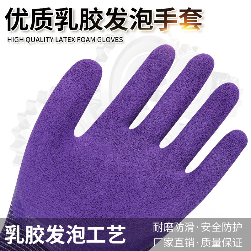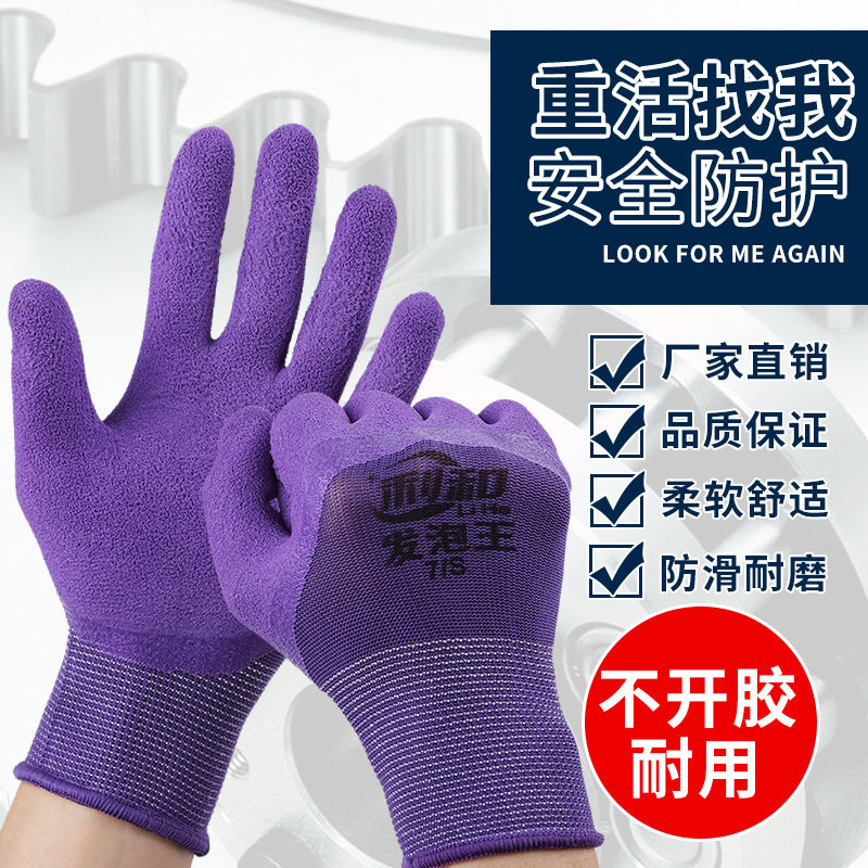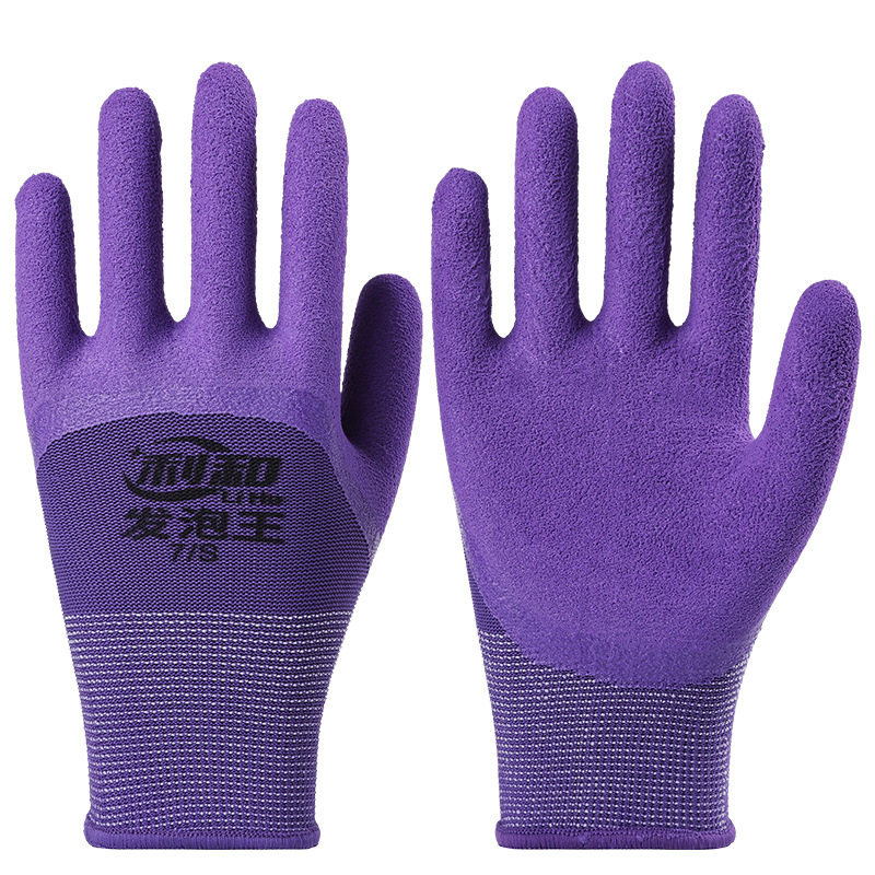 劳保手套女夏干活薄款小号码耐磨胶皮防滑户外作业涂胶乳胶发泡王