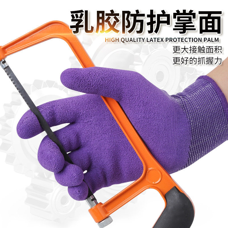 手套劳保手套乳胶橡胶手套工作劳保防滑防水耐磨胶皮手套工地干活