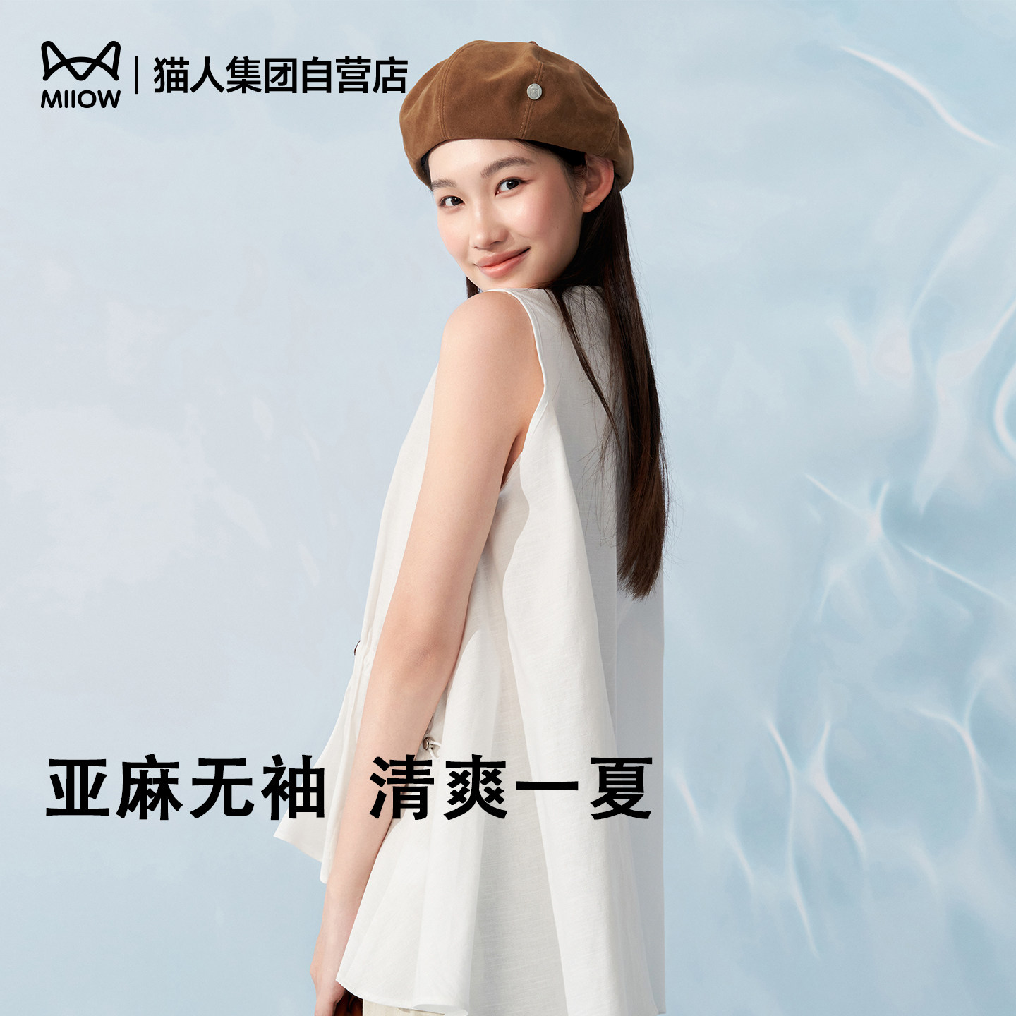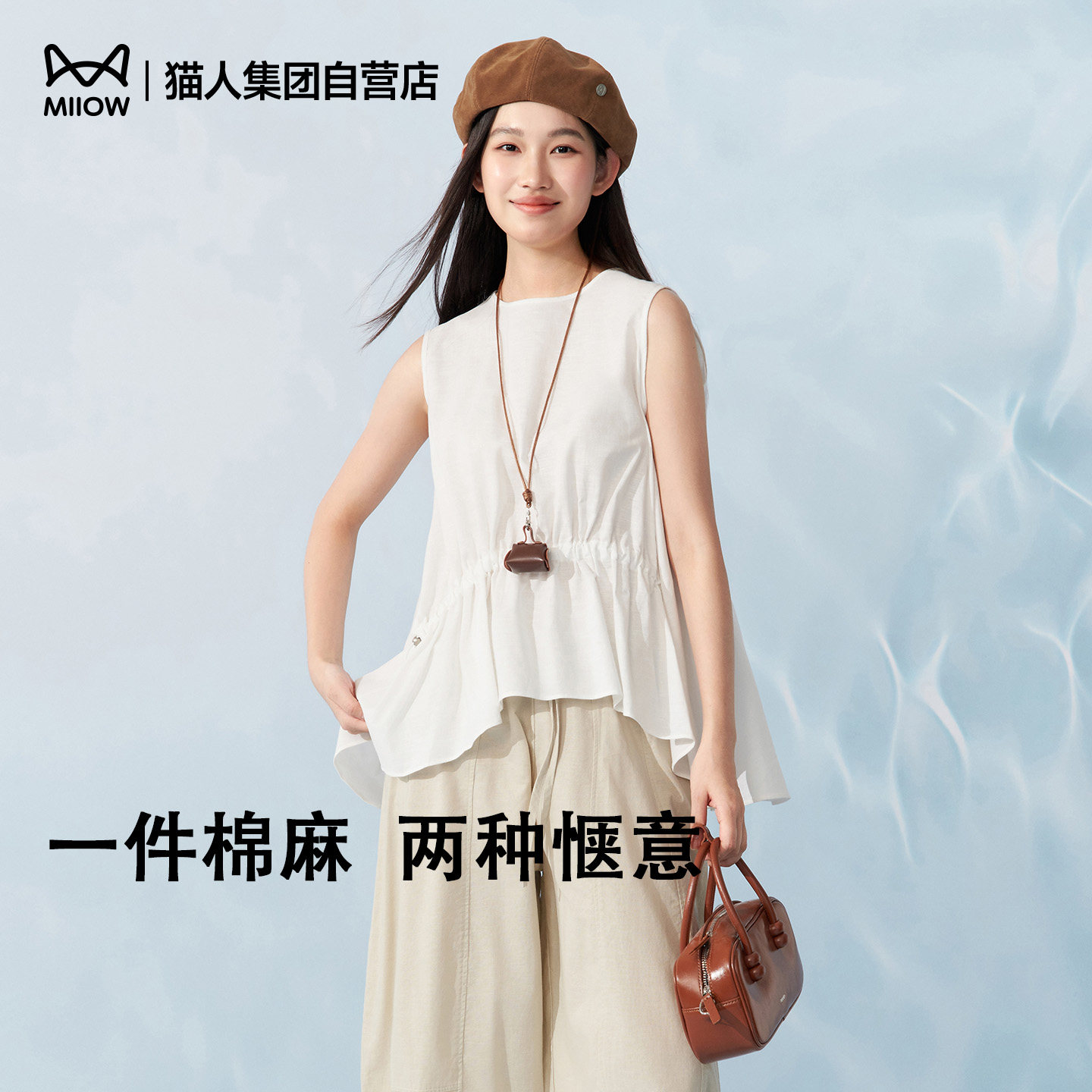 猫人亚麻无袖套头背心女夏外穿内搭2026新款宽松打底上衣