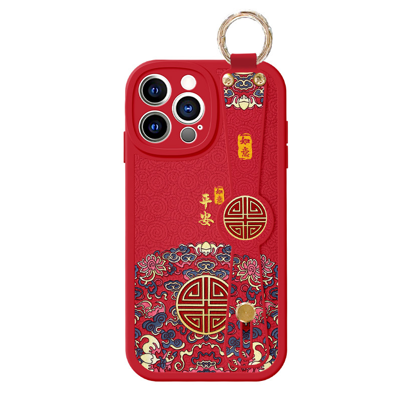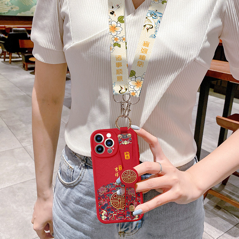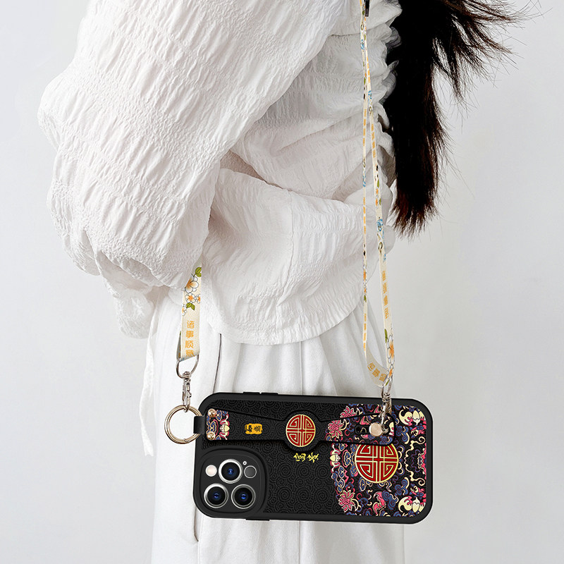 佳朗适用苹果16手机壳国风iphone15复古13防摔14浮雕XSMAX腕带12支架X斜跨挎plus可背带promax挂绳保护套宫廷