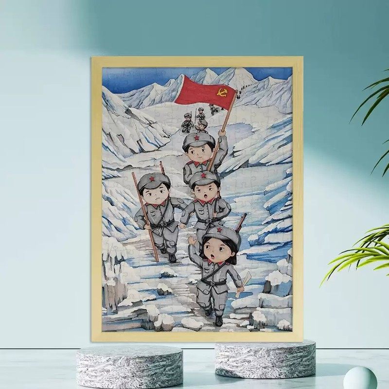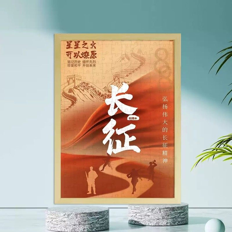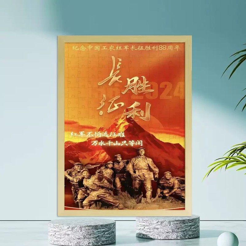 8.1建军节主题拼图木质1000片儿童玩具6至10岁男孩礼物有相框挂画