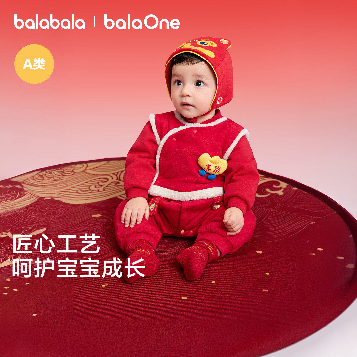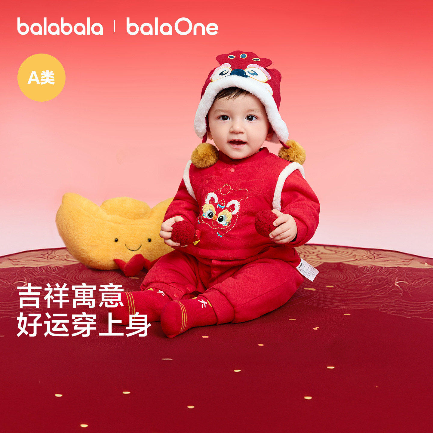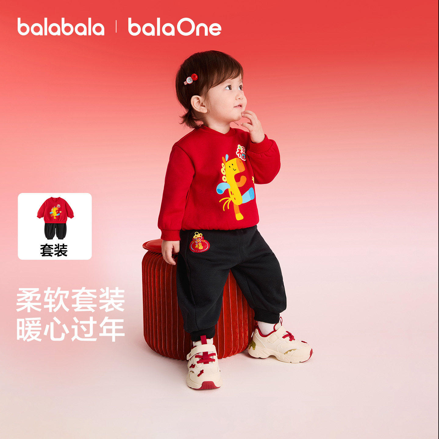 【胡可推荐】巴拉巴拉儿童套装宝宝拜年服两件套2026新款冬装红色