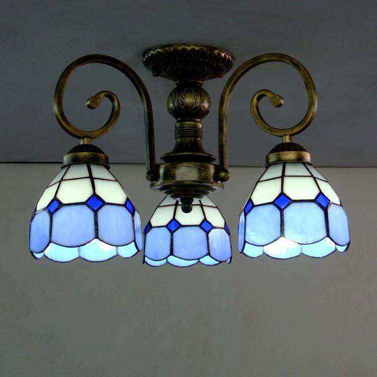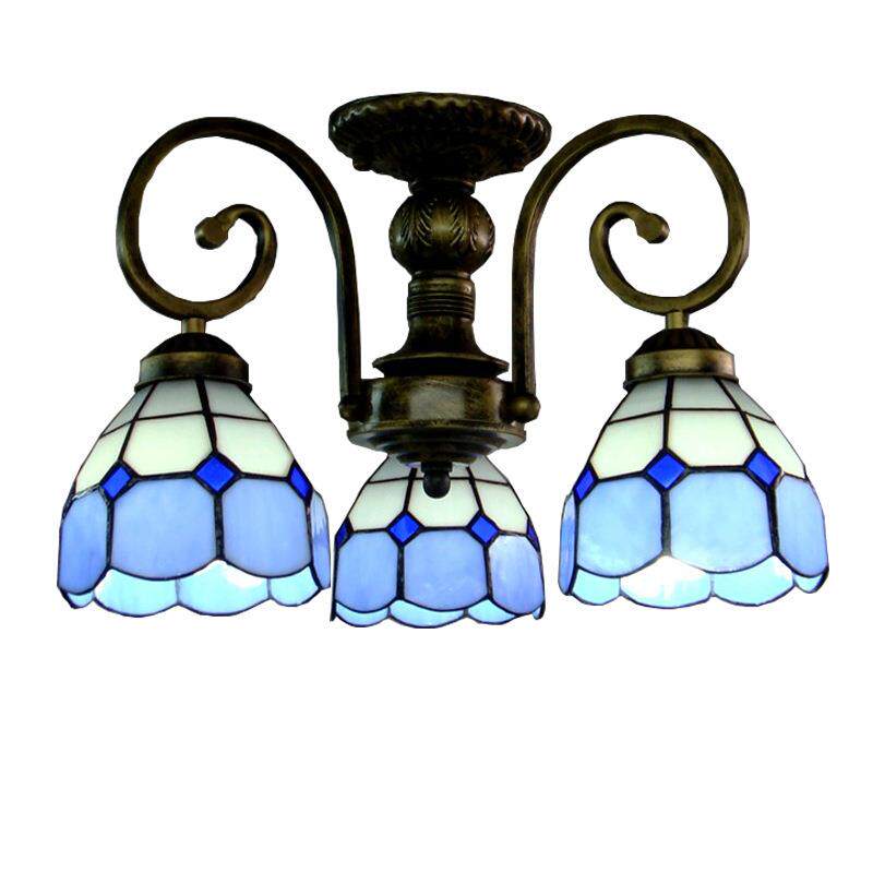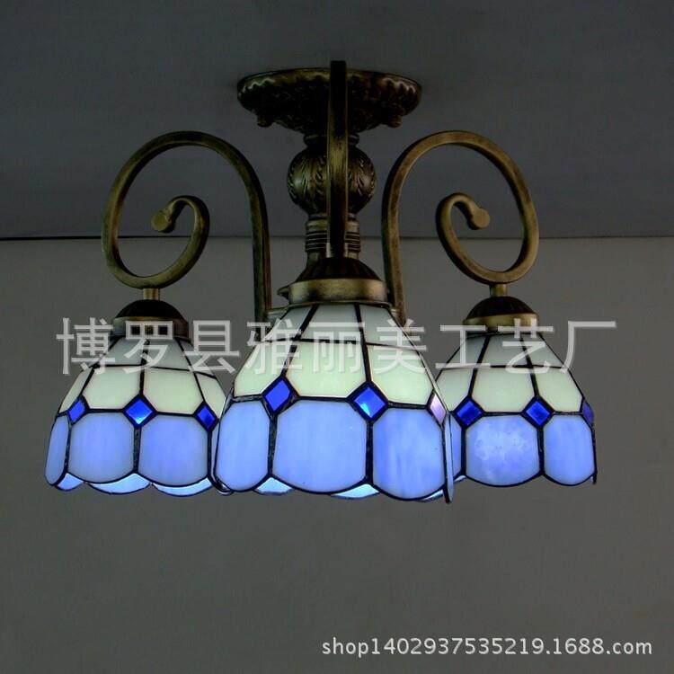 吊灯地中海灯饰餐厅三头吊灯蓝白格餐厅创意铁艺吊