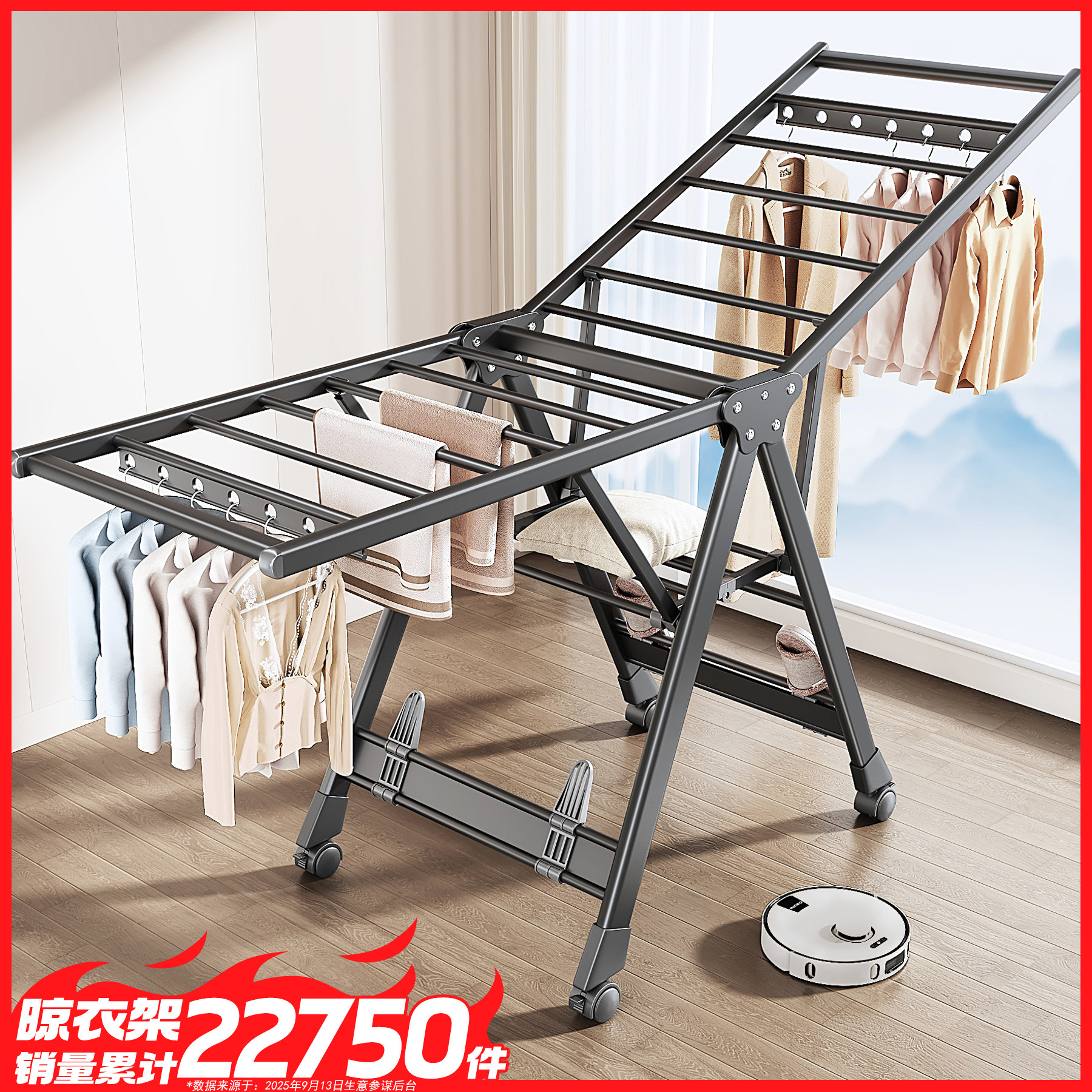 晾衣架落地家用卧室挂衣服简易室内凉衣杆折叠阳台伸缩晒衣帽架子