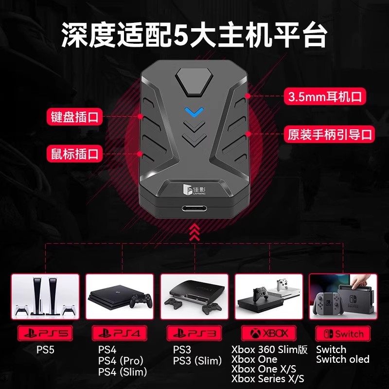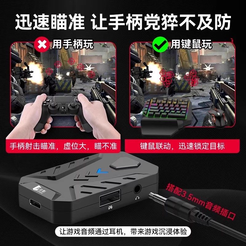 适用PS4键盘鼠标转换器PS4/Xbox/Switch主机手柄键鼠即插即用