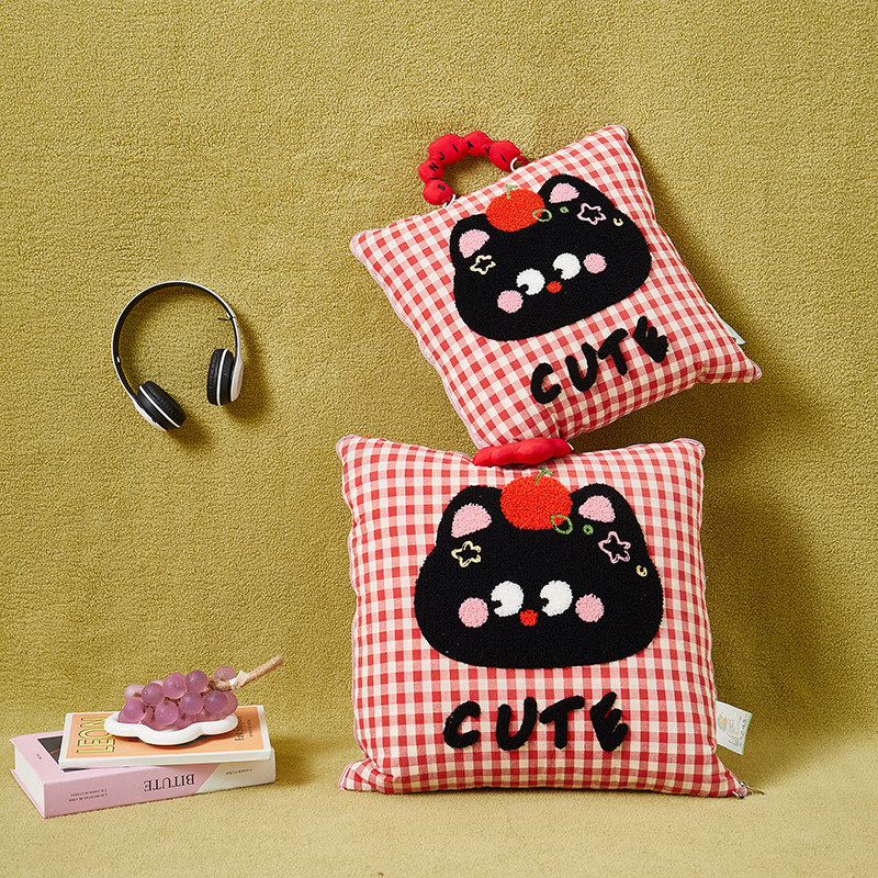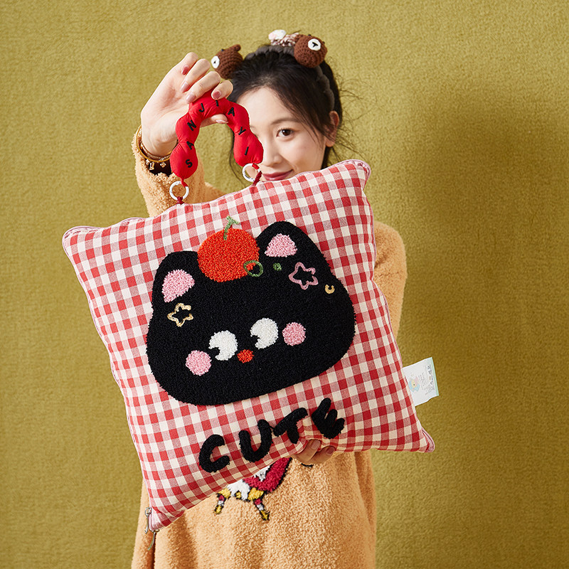 可爱小格子毛毯办公室午睡空调毯折叠靠枕可收纳款被子抱枕头两用
