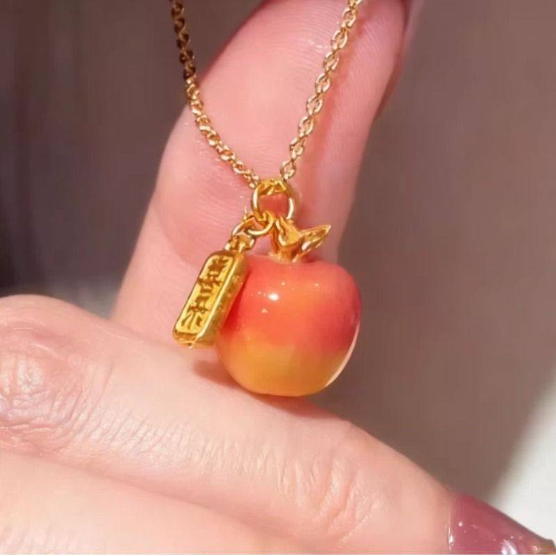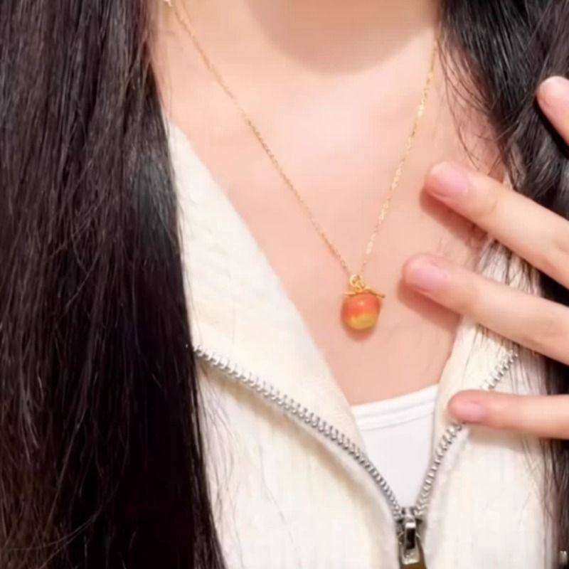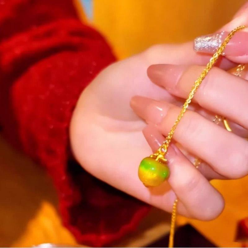 幻彩温变苹果吊坠项链遇热变色锁骨链圣诞节礼物送女友闺蜜感温