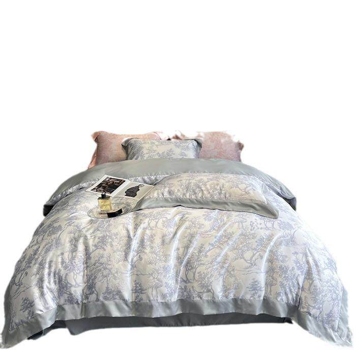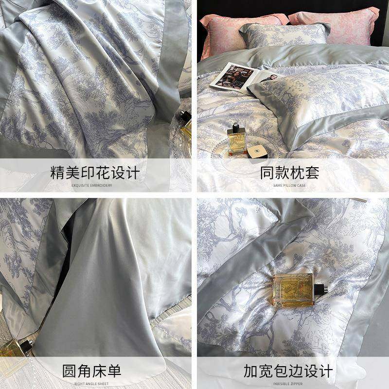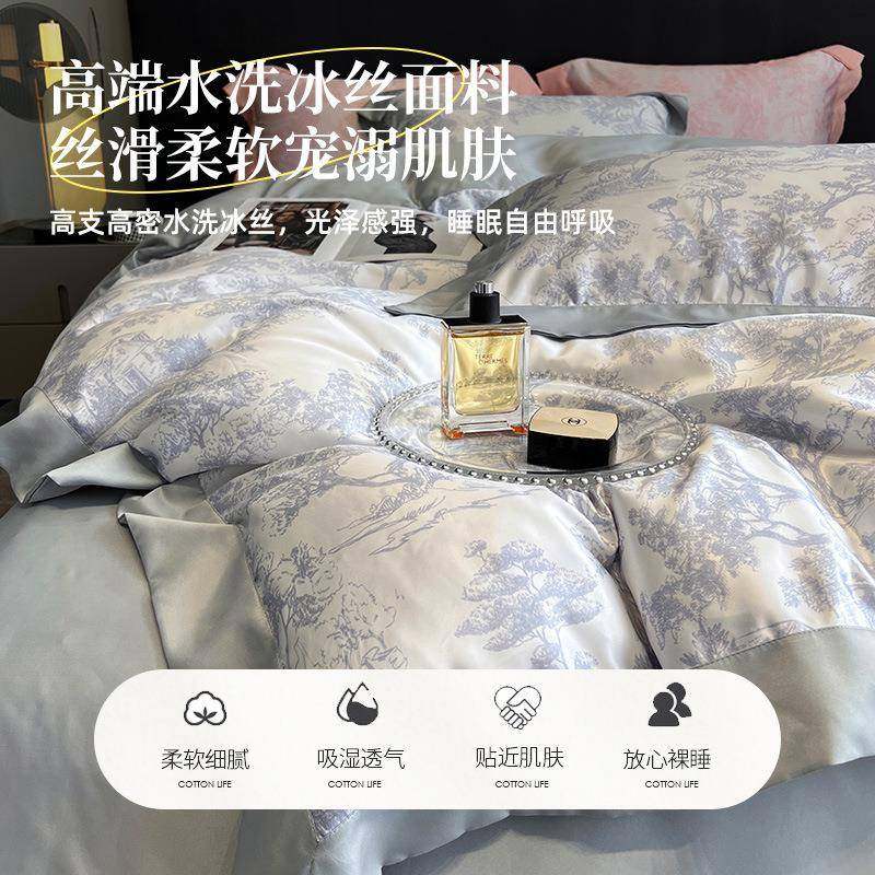 水洗真丝四件套冰丝被套欧式丝滑裸睡夏季床上天丝床单床笠款极简