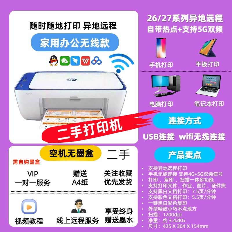 HP惠普2723打印机小型家用办公复印扫描彩色喷墨照片复印一体机A4