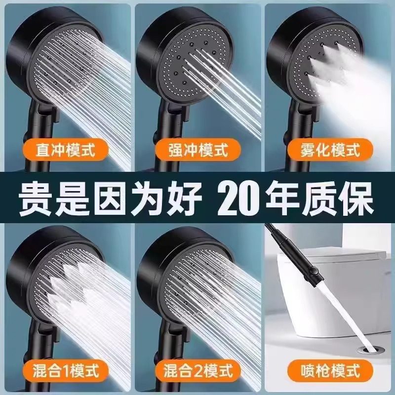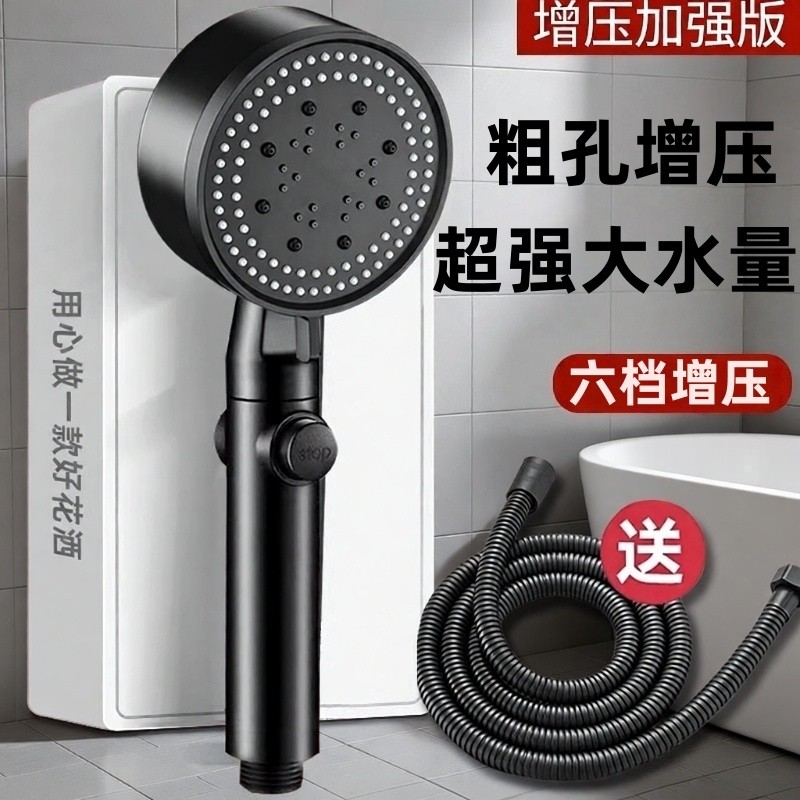 增压花洒喷头大淋浴雨头家用高压洗澡软管套装开关一键免打孔全铜