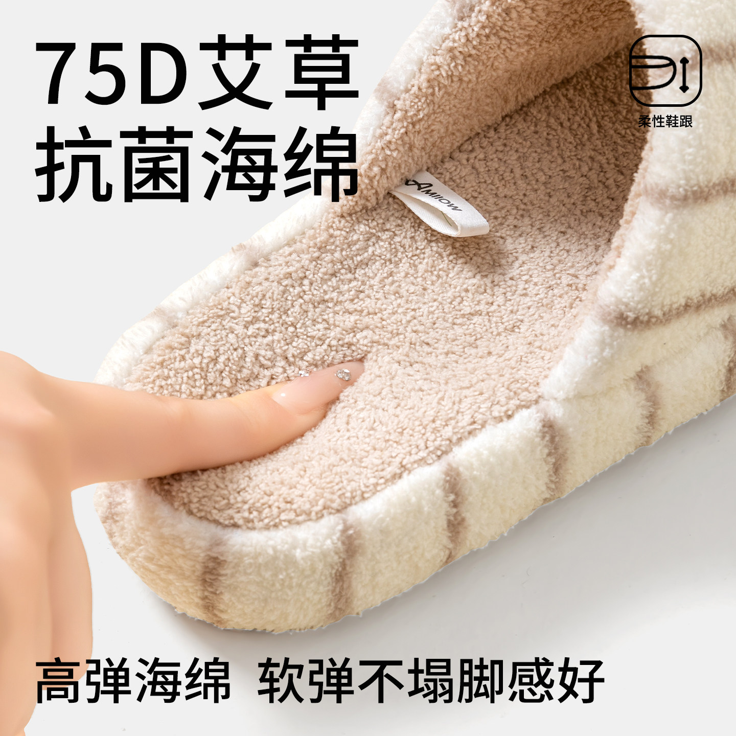 四季春秋开口棉拖鞋女款室内家居防滑厚底木地板透气情侣卧室拖鞋